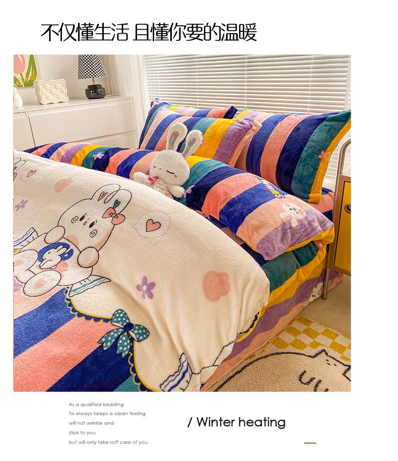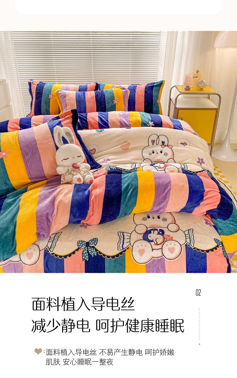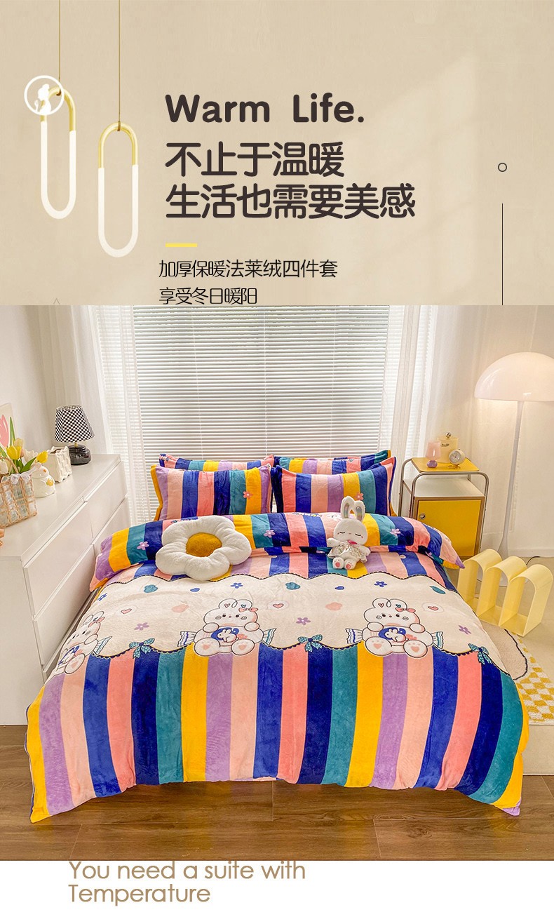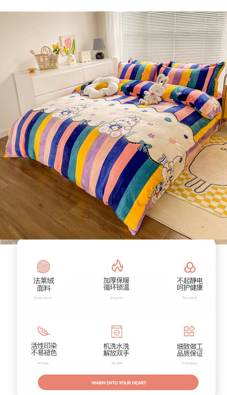 当前位置: 91家纺网 > 商品网购 > 床品套件 > 四件套 > 法莱绒四件套 > 妖妖家纺 2023新款 法莱绒加厚保暖四件套 彩虹兔兔