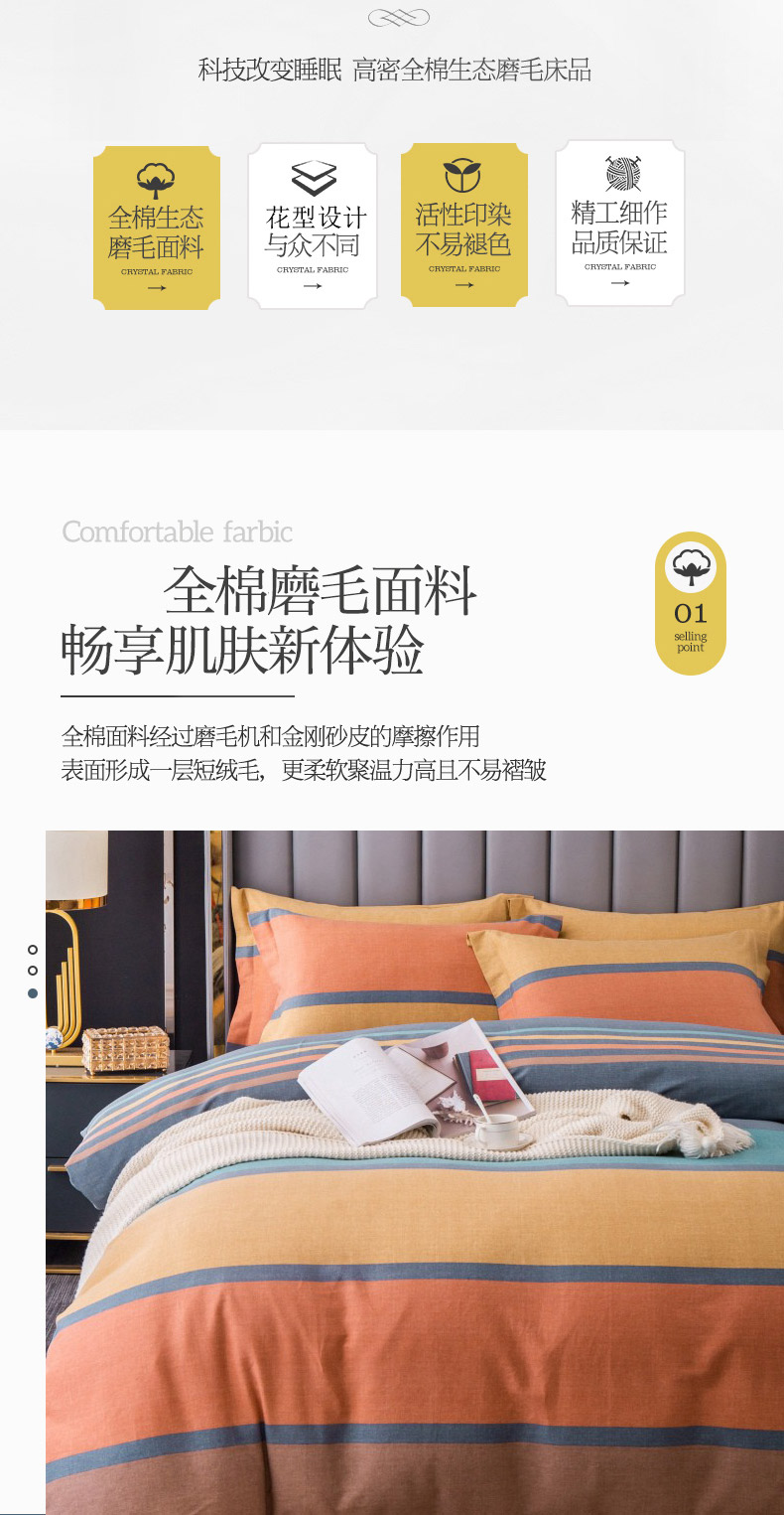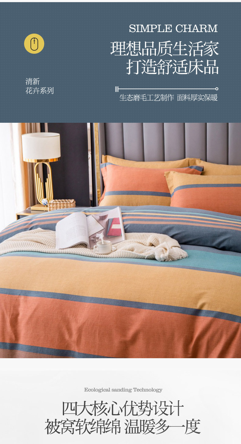 商品名称:晶缦家纺 2023新款风尚系全棉生态磨毛多规格单被套 风尚