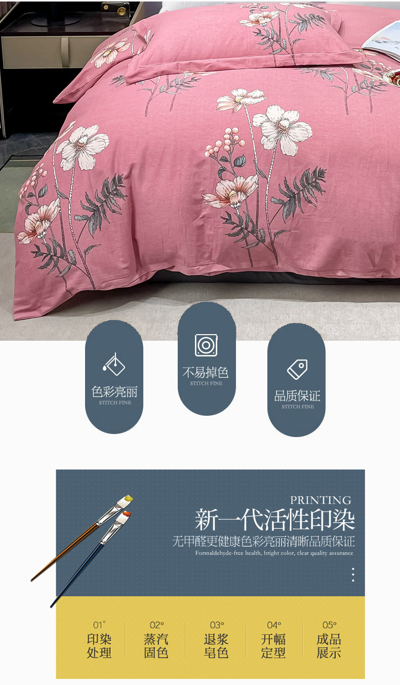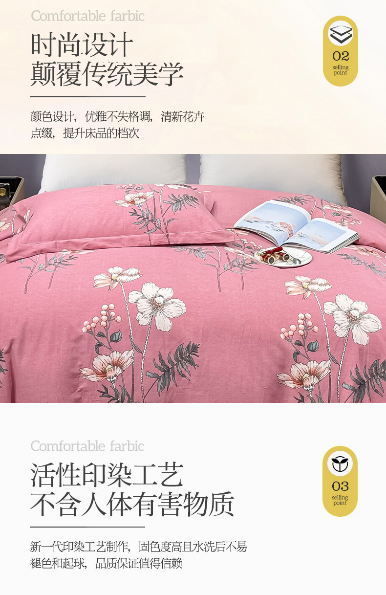 晶缦家纺 2023新款风尚系全棉生态磨毛多规格单被套 听雨轩粉