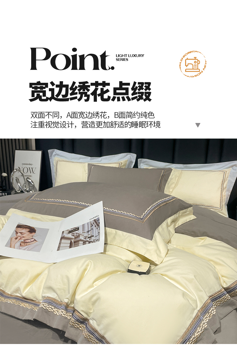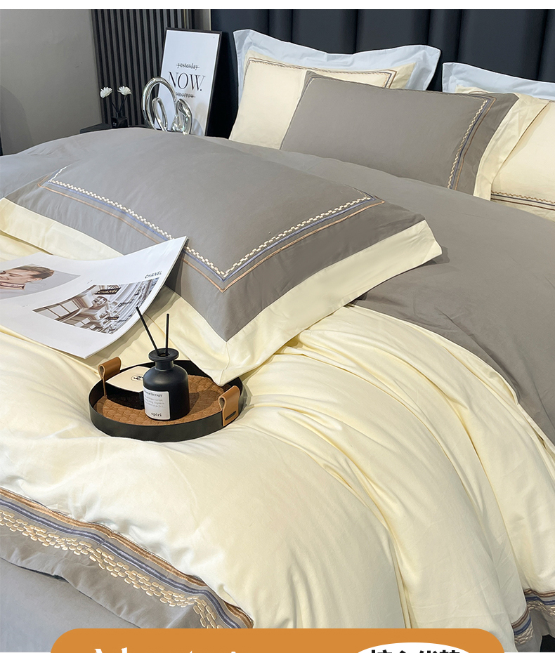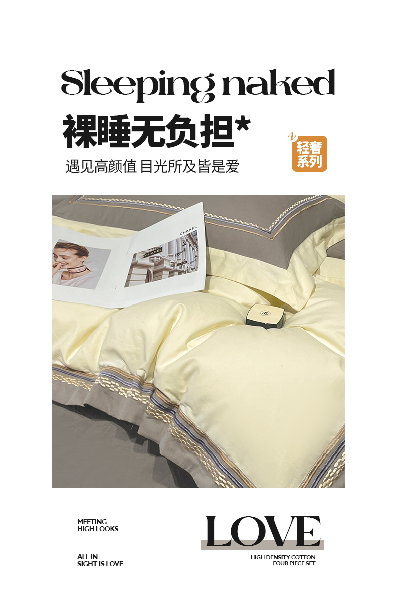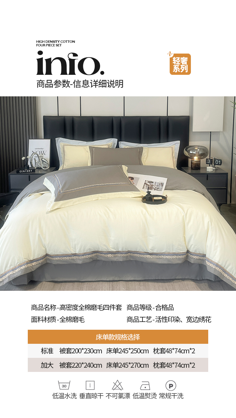 商品名称:懒猫 2024新款高精密全棉磨毛绣花四件套 泰洛-奶油黄