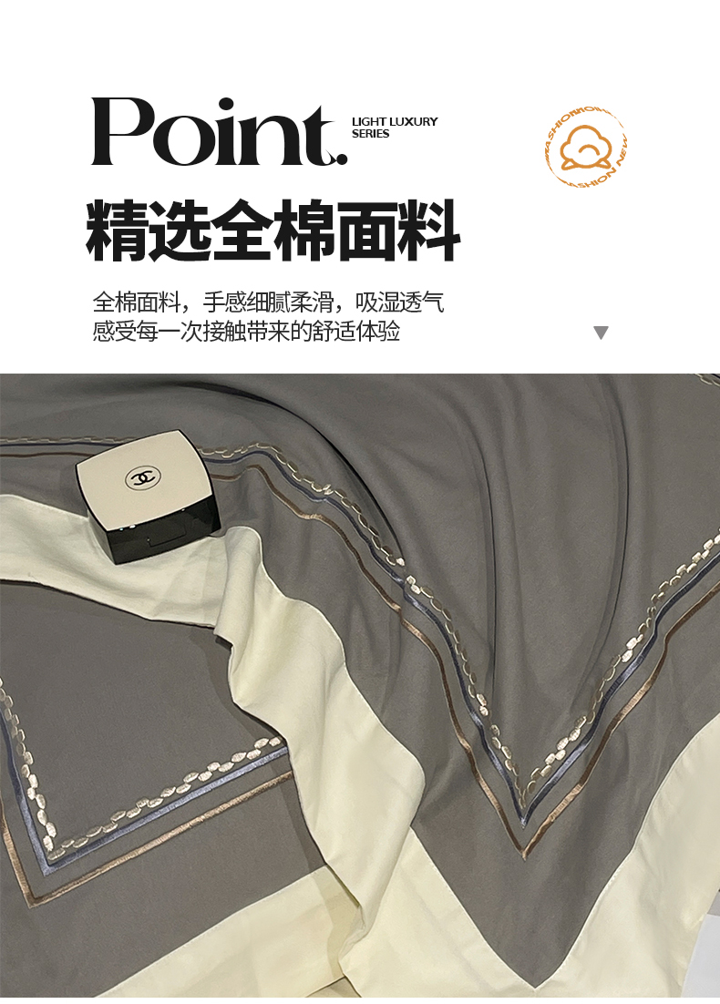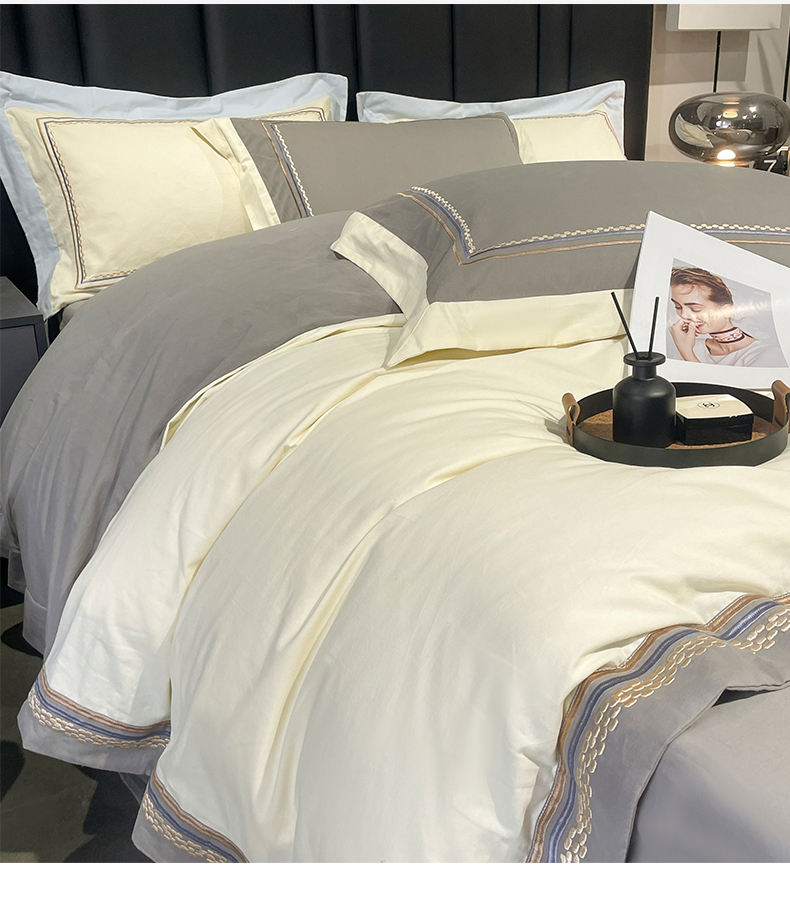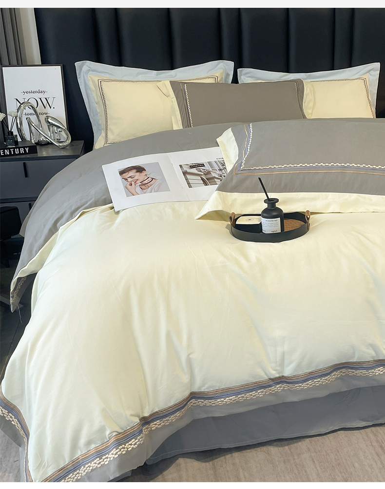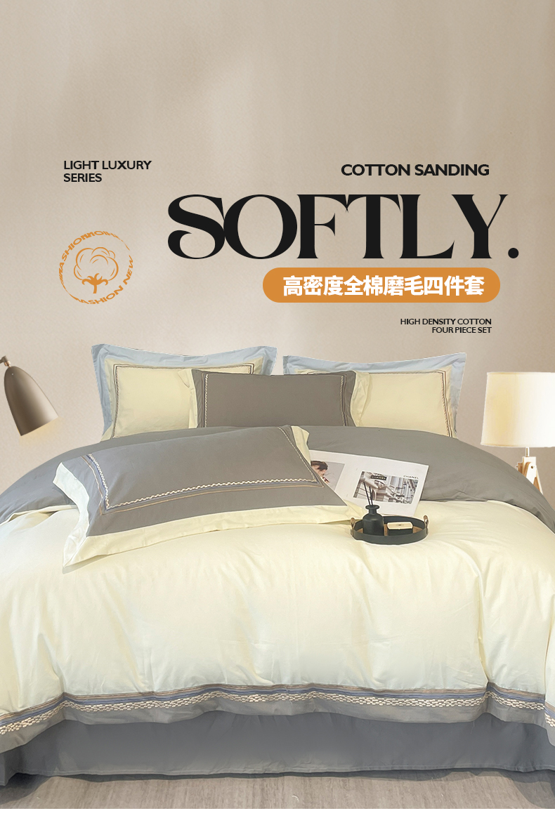 商品名称:懒猫 2024新款高精密全棉磨毛绣花四件套 泰洛-奶油黄