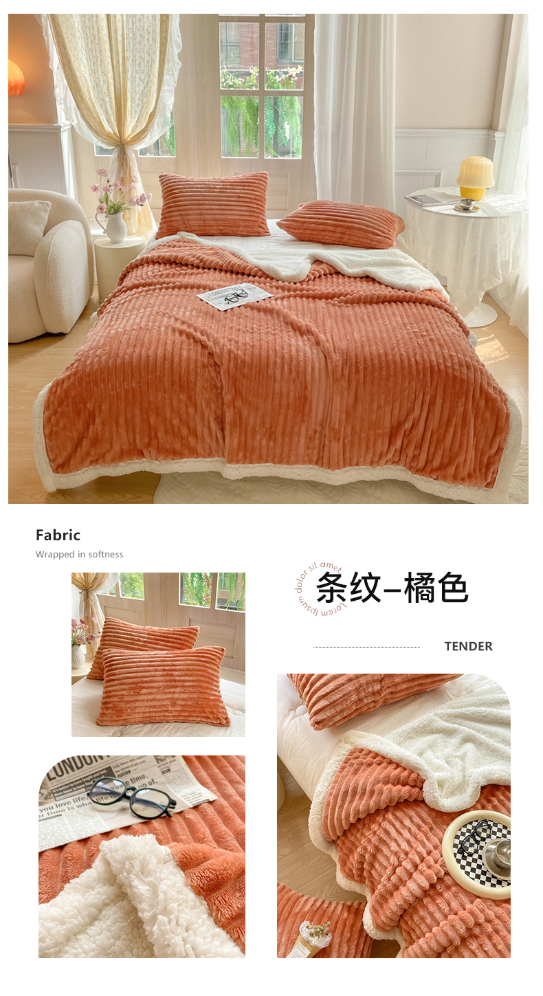 商品名称:欧邦 新款条纹兔兔绒羊羔绒毛毯午睡多功能毯 条纹-橘色
