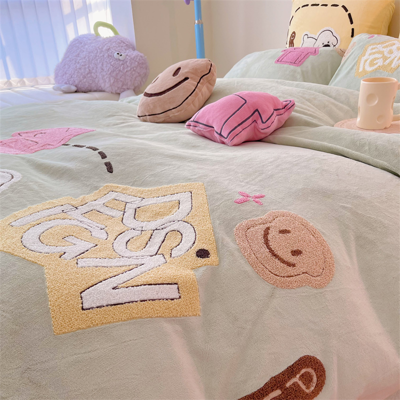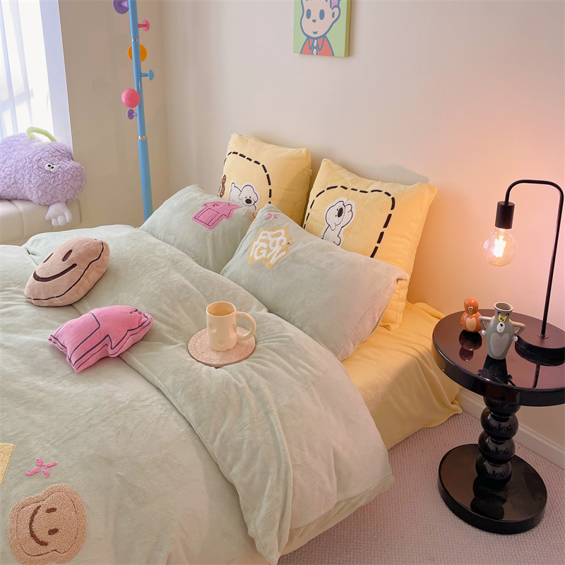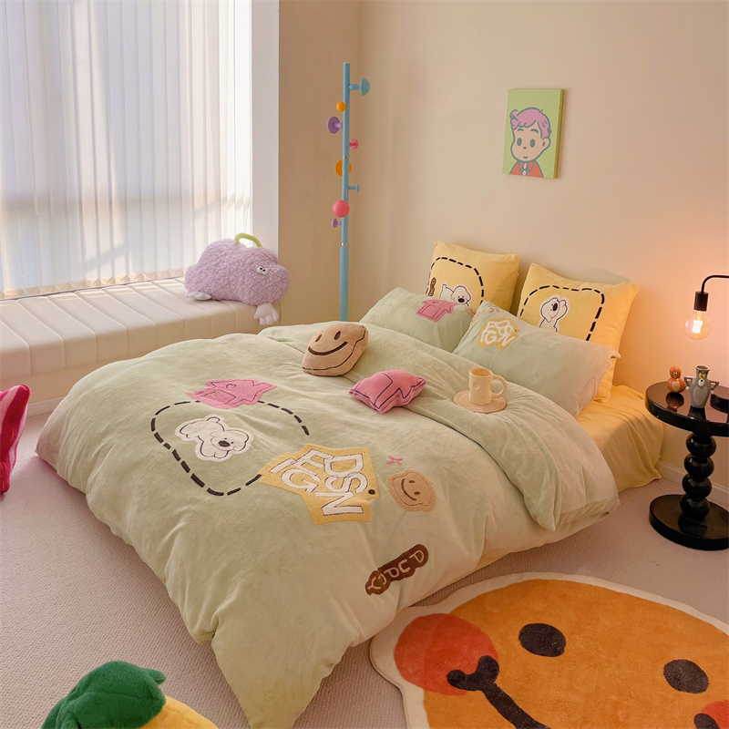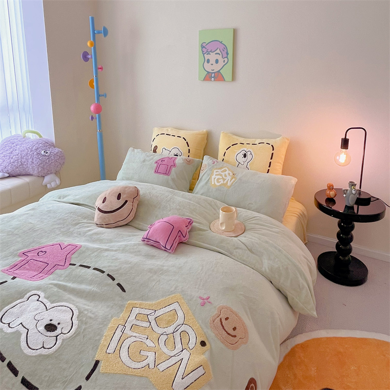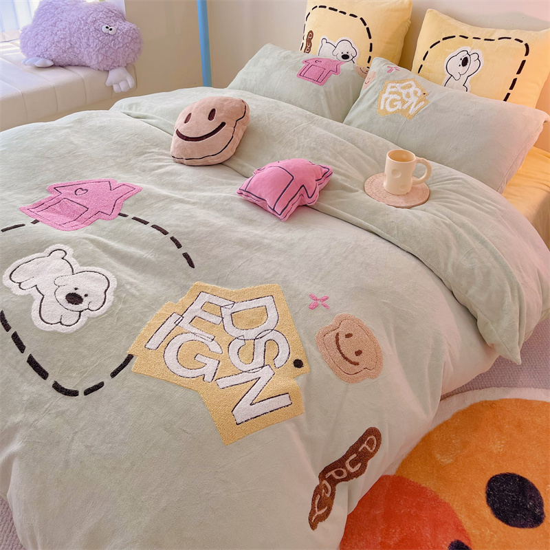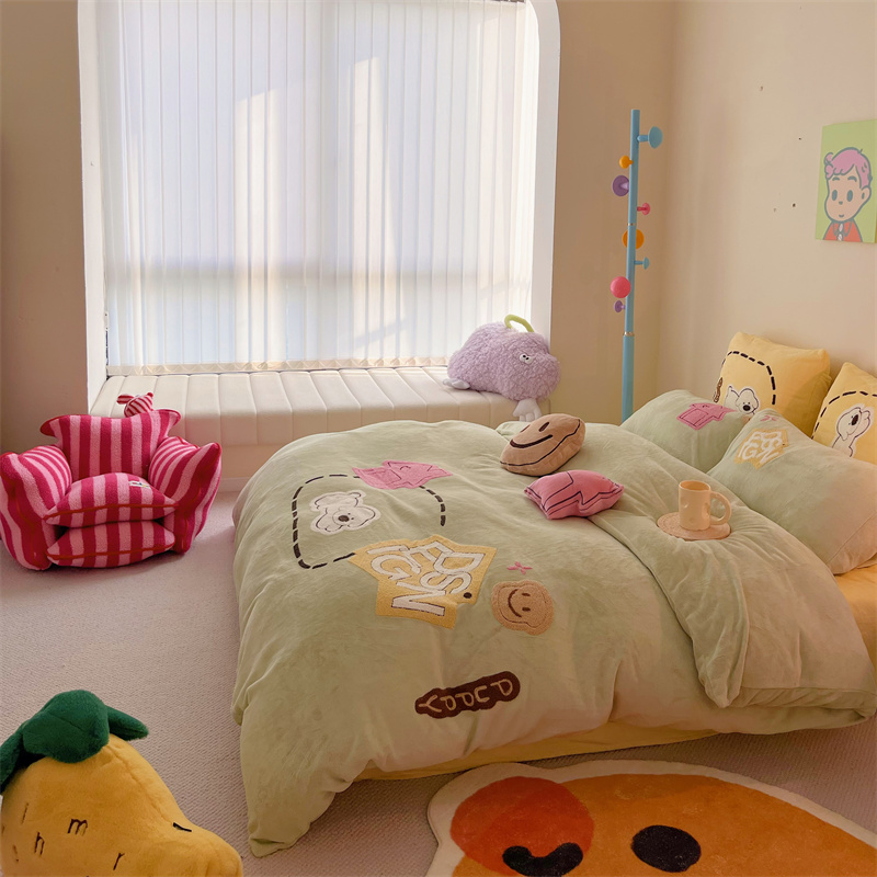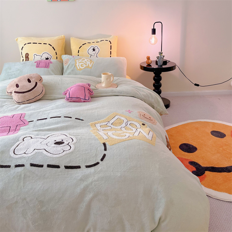 商品名称:星野 2023秋冬高克重牛奶绒贴布绣多巴胺系列四件套 洛可可