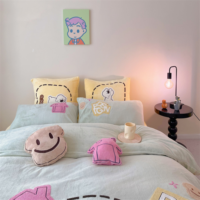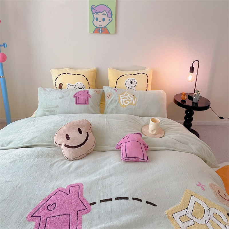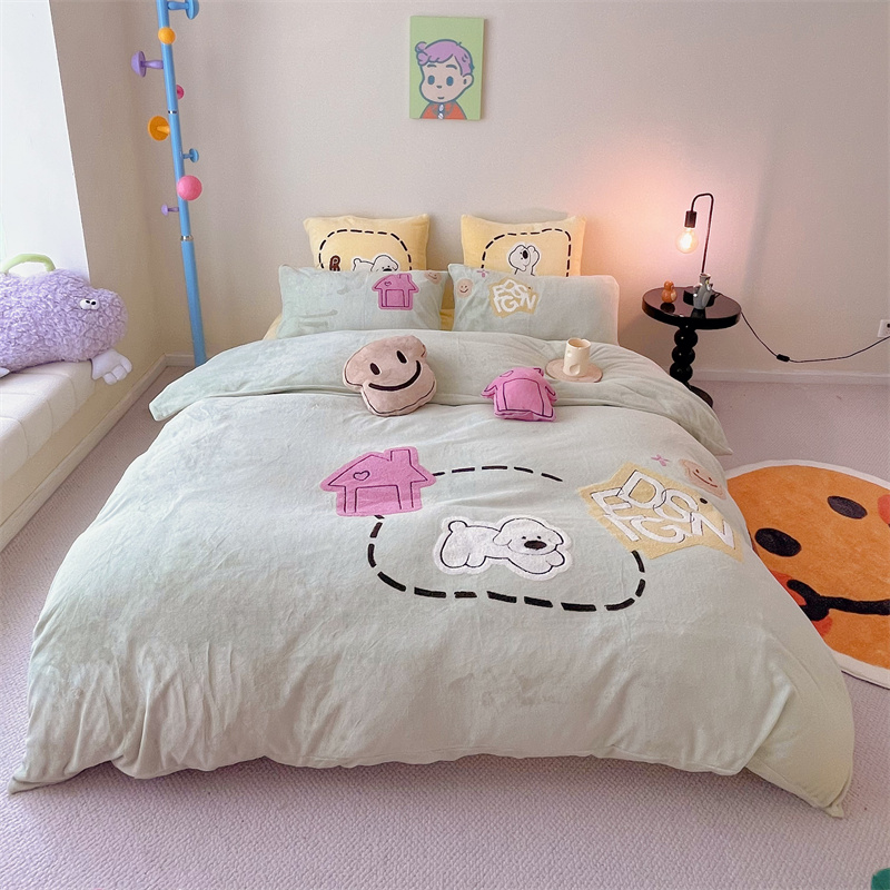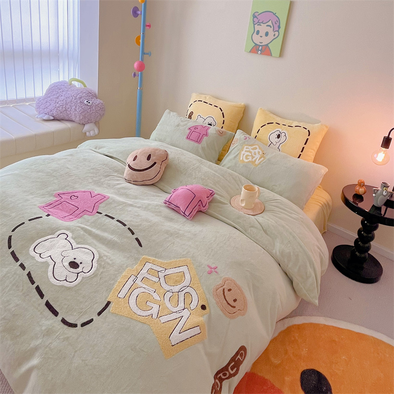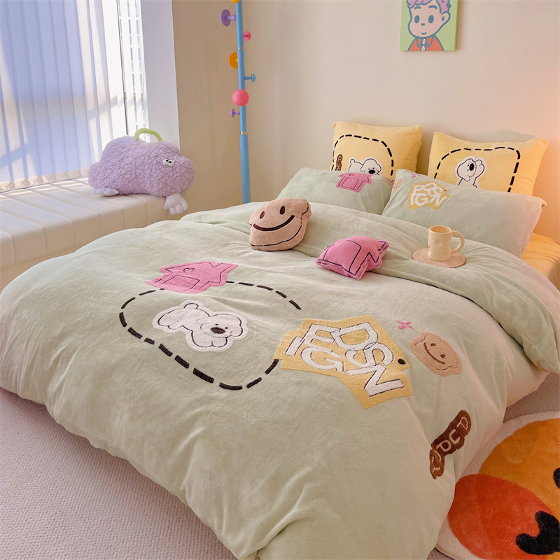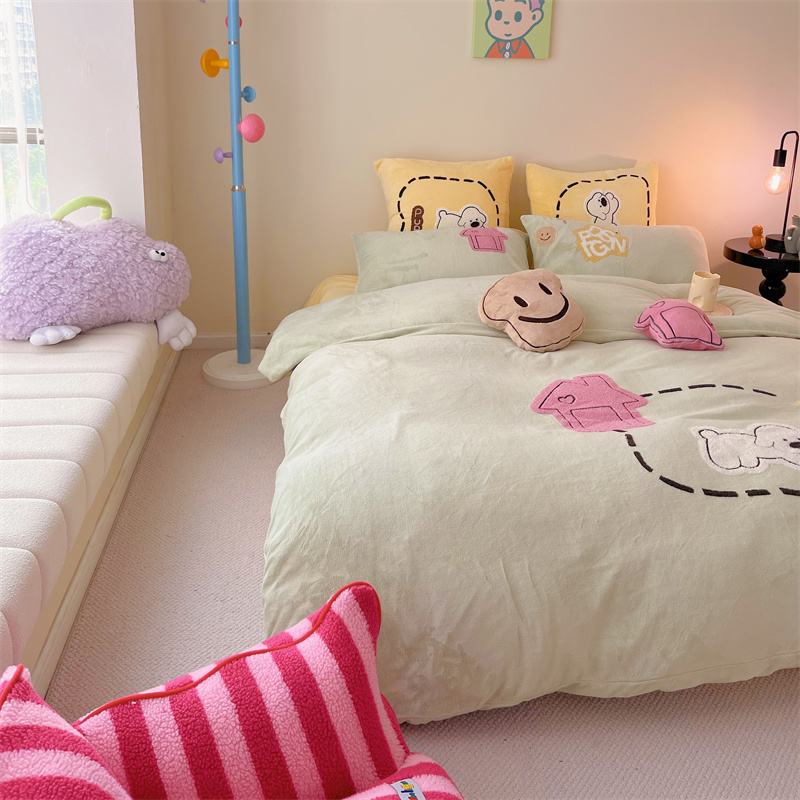 商品名称:星野 2023秋冬高克重牛奶绒贴布绣多巴胺系列四件套 洛可可