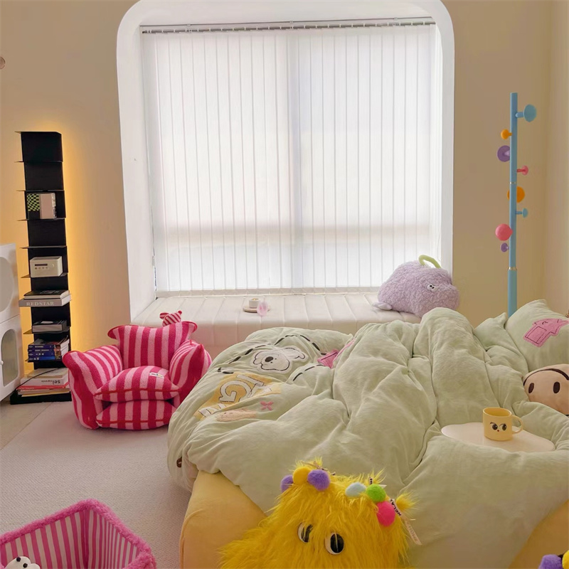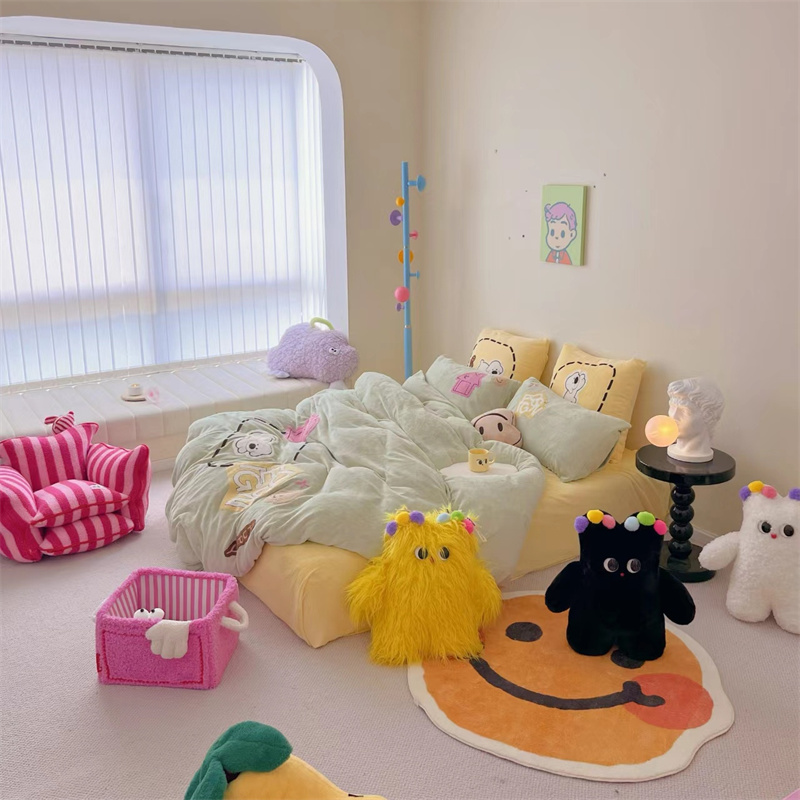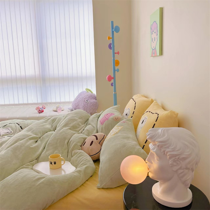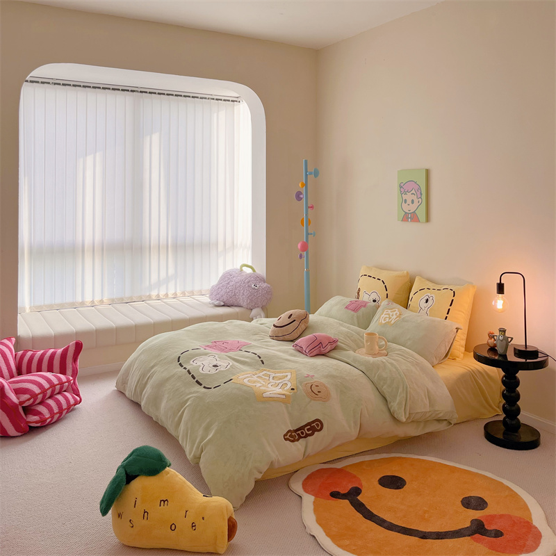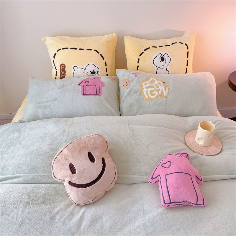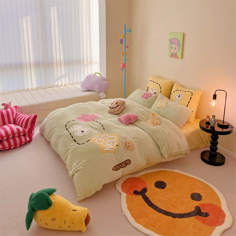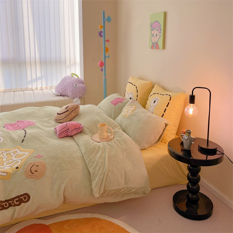 商品名称:星野 2023秋冬高克重牛奶绒贴布绣多巴胺系列四件套 洛可可