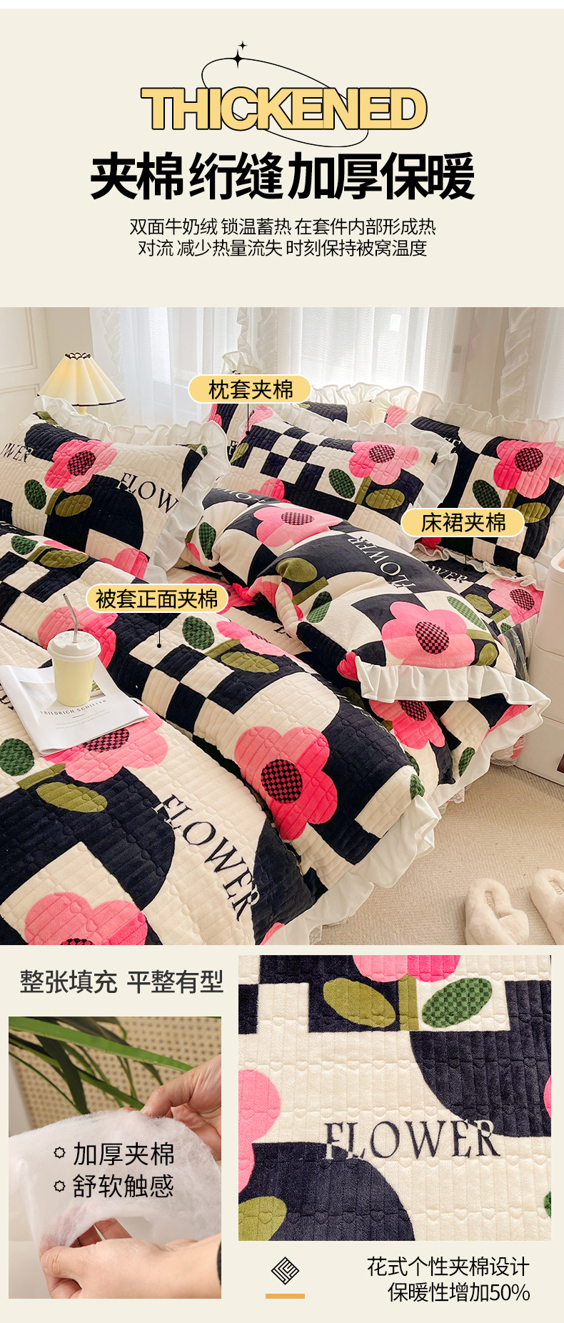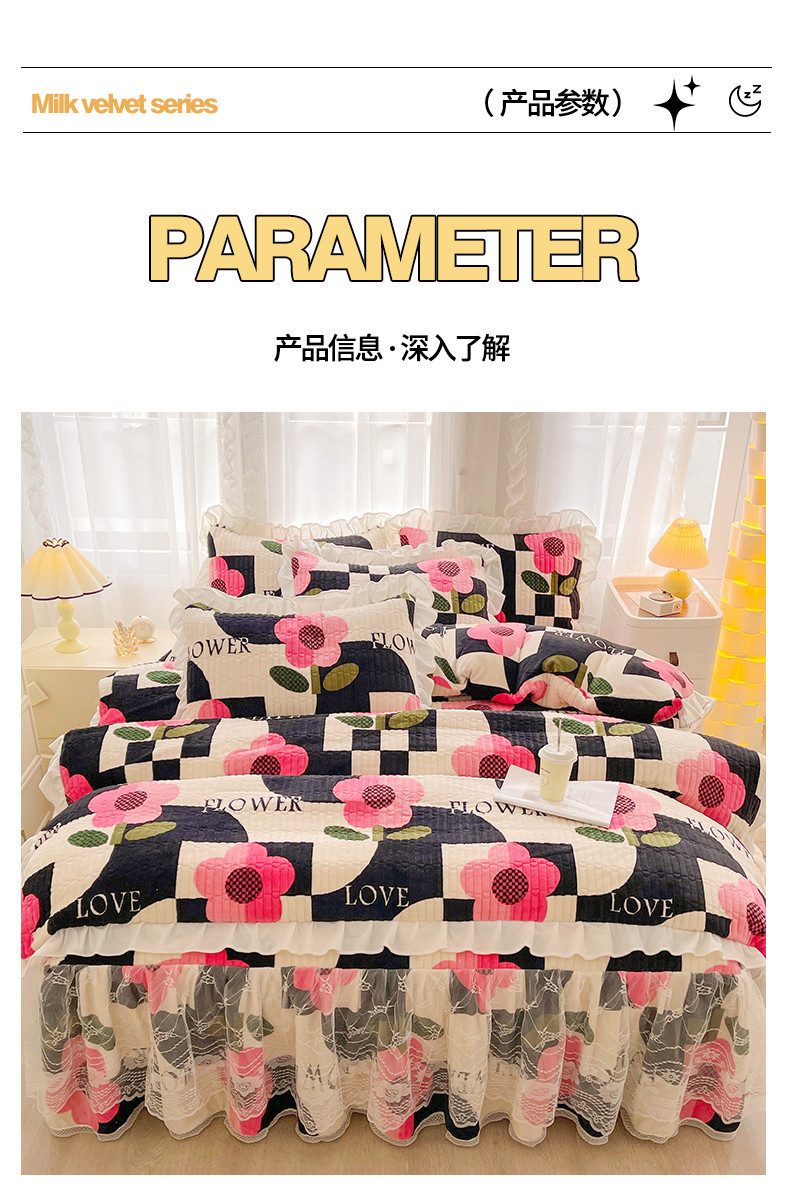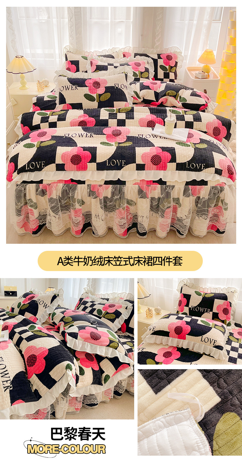 当前位置: 91家纺网 > 商品网购 > 床品套件 > 四件套 > 牛奶绒四件套 > 宜凡家纺 2023新款牛奶绒印花夹棉被套床笠式床裙四件套 巴黎春天