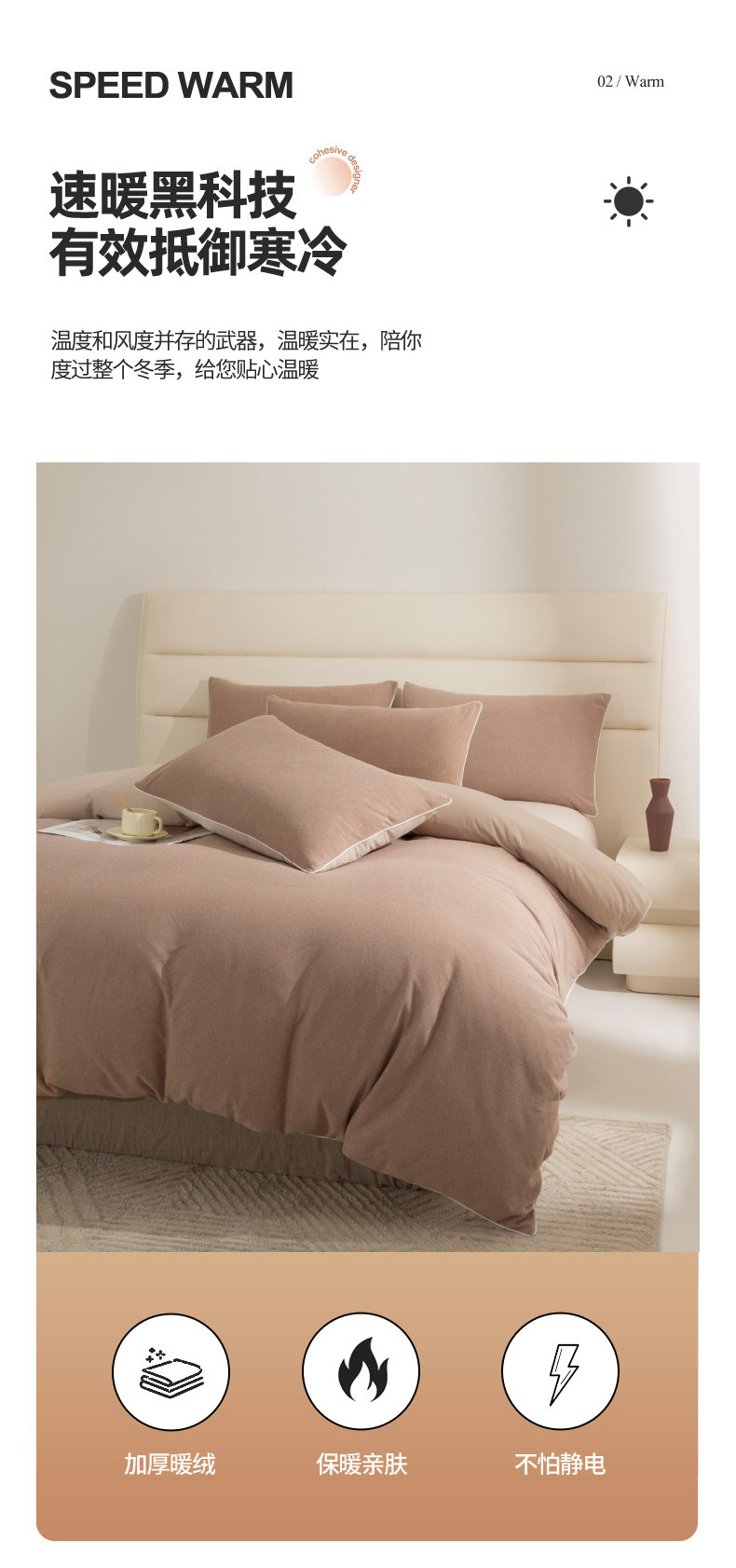 当前位置: 91家纺网 > 商品网购 > 床品套件 > 四件套 > 磨绒四件套 > 万盛家纺 2025新款速暖绒保暖速干四件套 深咖—奶油咖