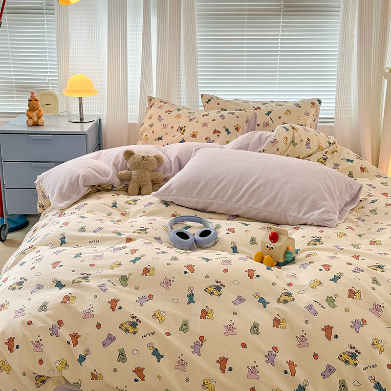 (总)昔可家纺 2024新款印花牛奶绒四件套系列-洛丽塔风,萝莉小兔,小熊烘焙屋,小熊玩偶屋