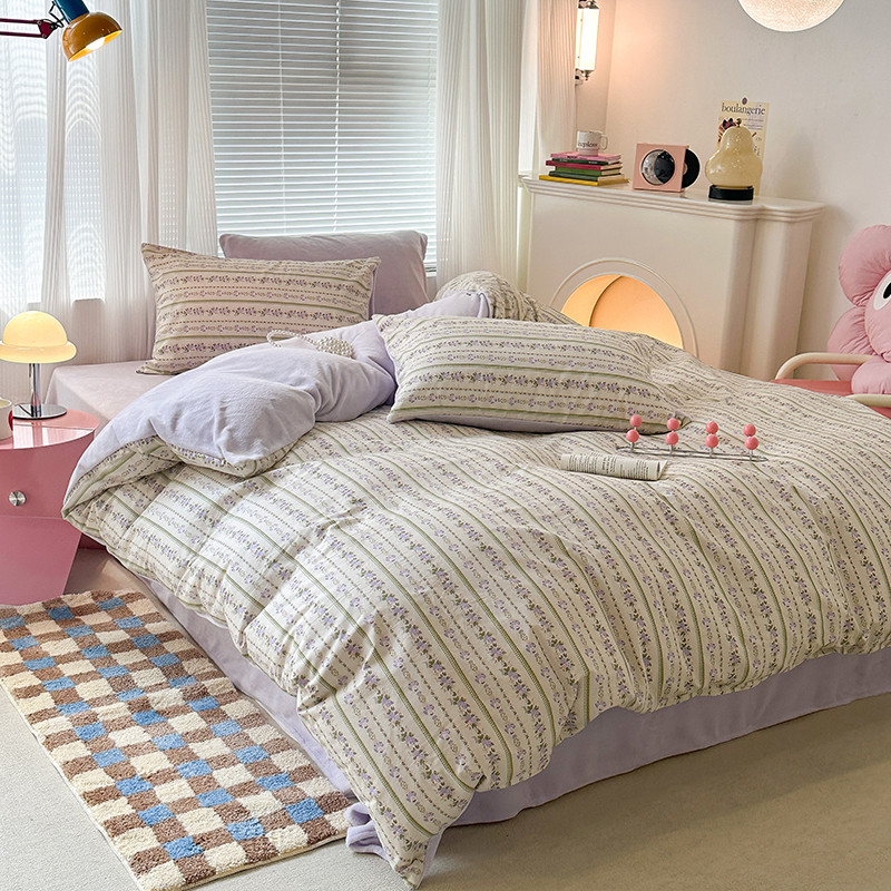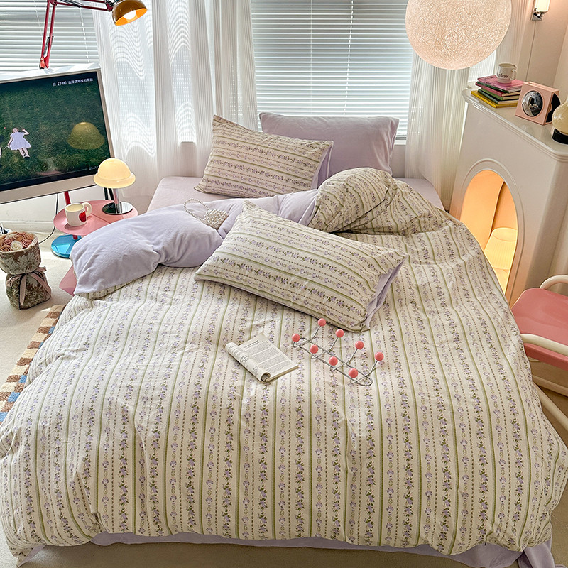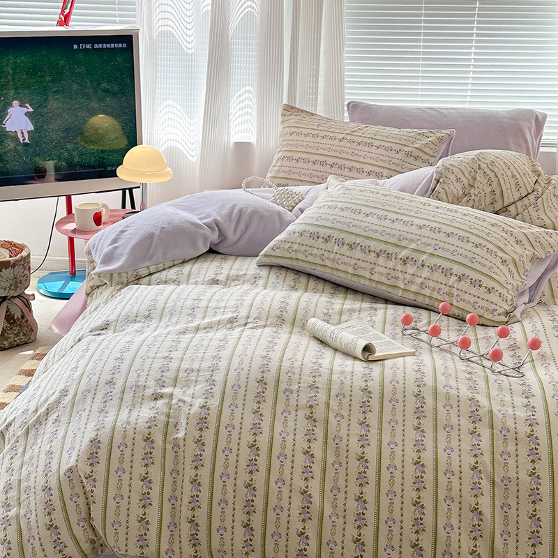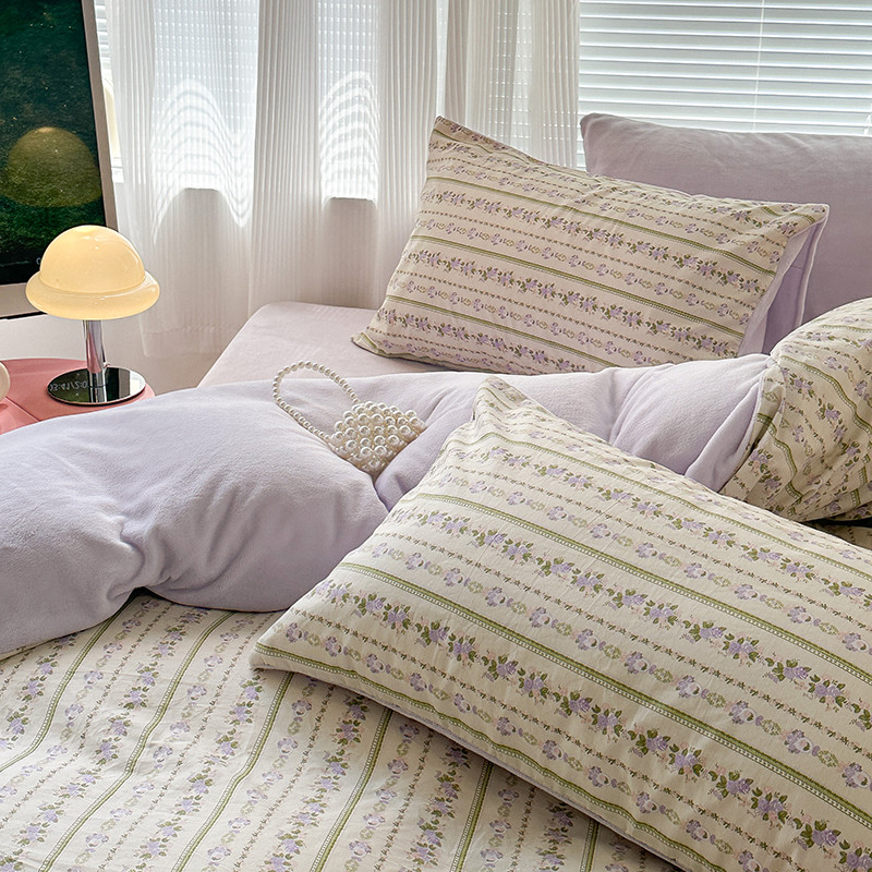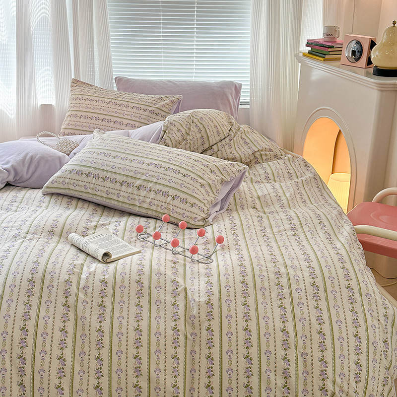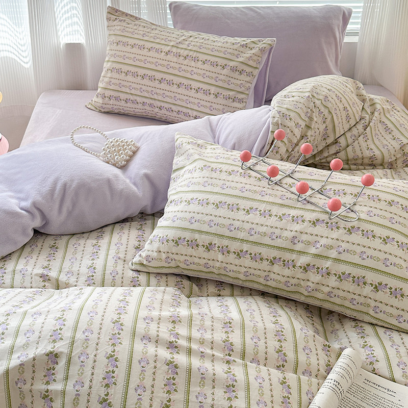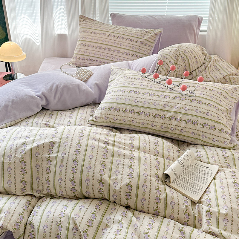 (总)昔可家纺 2023新款全棉小花系列四件套,柏林少女,小小的樱桃,紫色葡萄