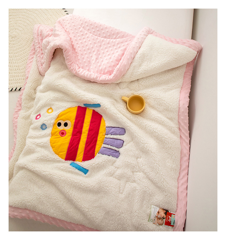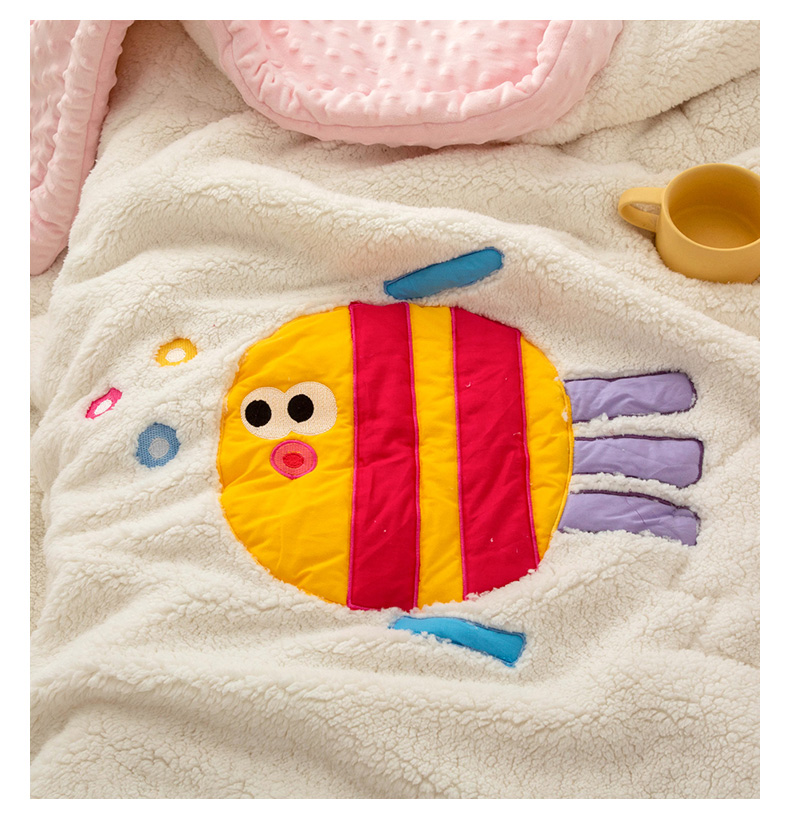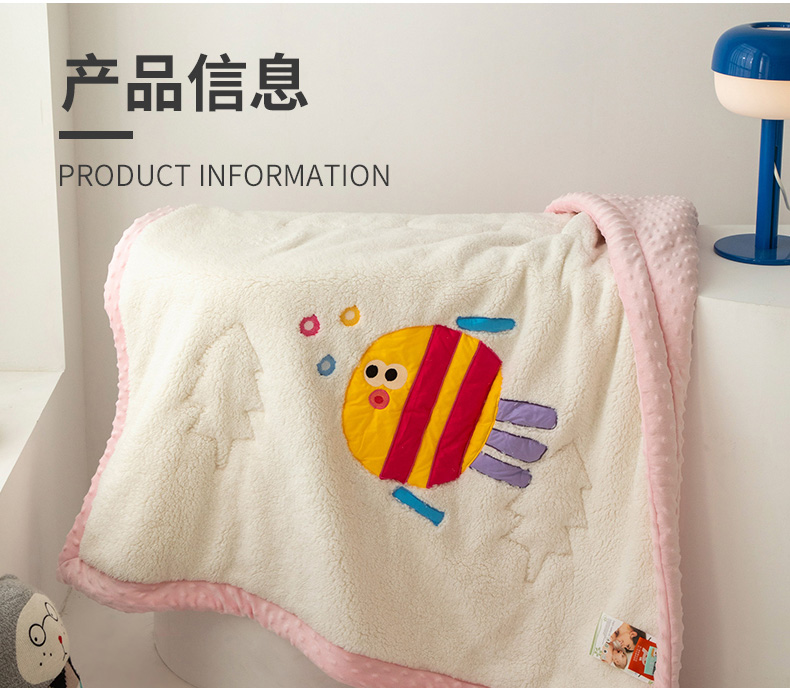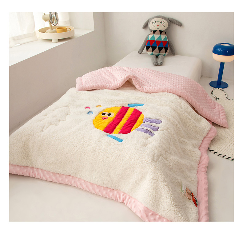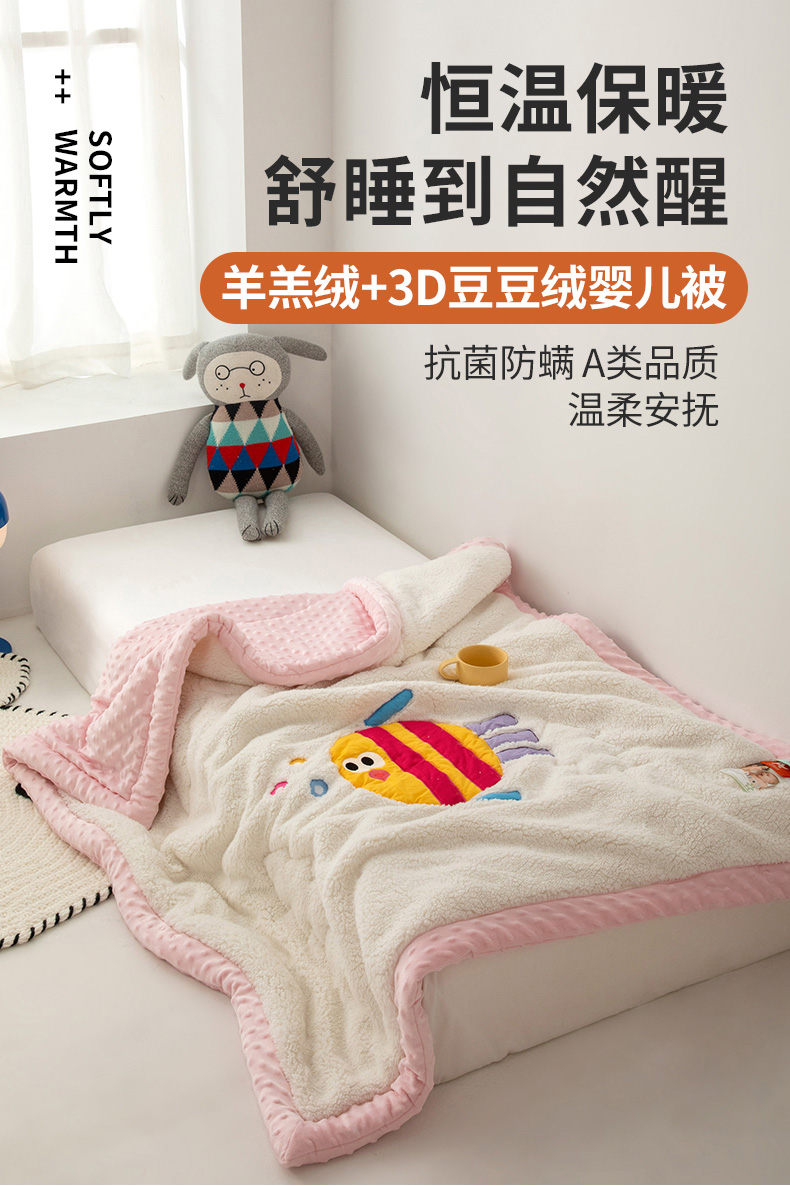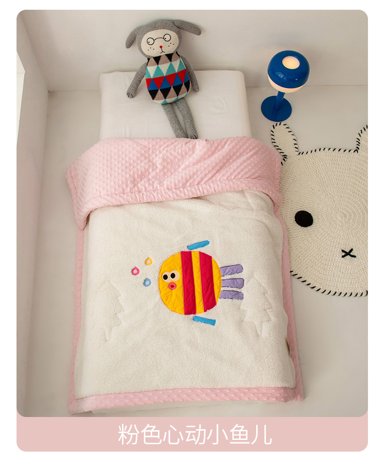 商品名称:喜多兔儿童家纺 2023新款羊羔绒3D抗菌豆豆绒毯 粉色心动小鱼儿