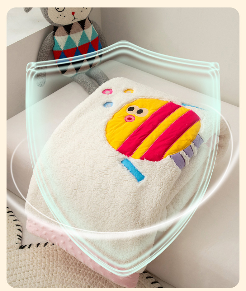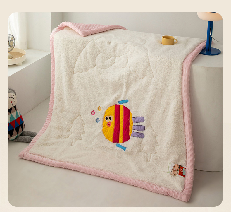 喜多兔儿童家纺 2023新款羊羔绒3D抗菌豆豆绒毯 粉色心动小鱼儿
