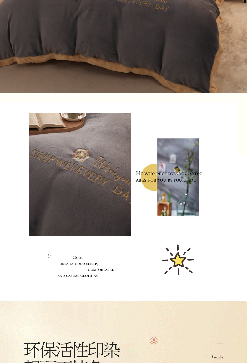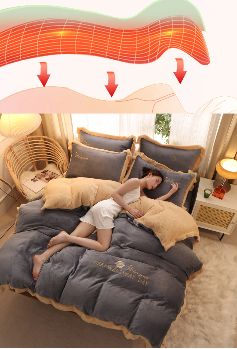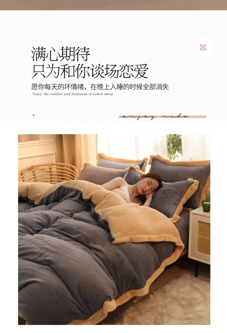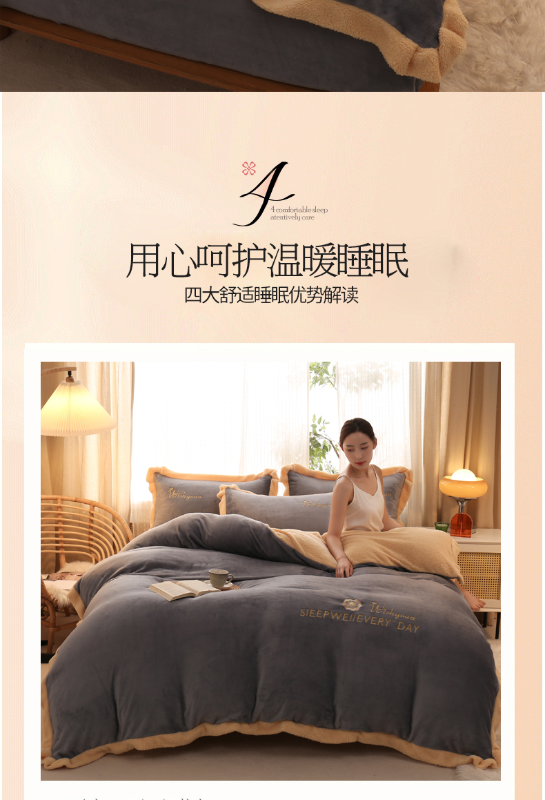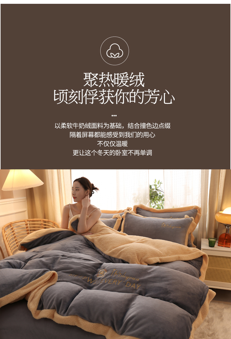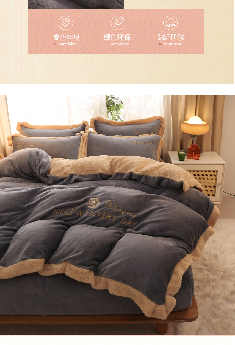 当前位置: 91家纺网 > 商品网购 > 床品套件 > 四件套 > 牛奶绒四件套 > 啊雅家居 2026新款绣花牛奶绒加羊羔绒四件套 深灰加米黄