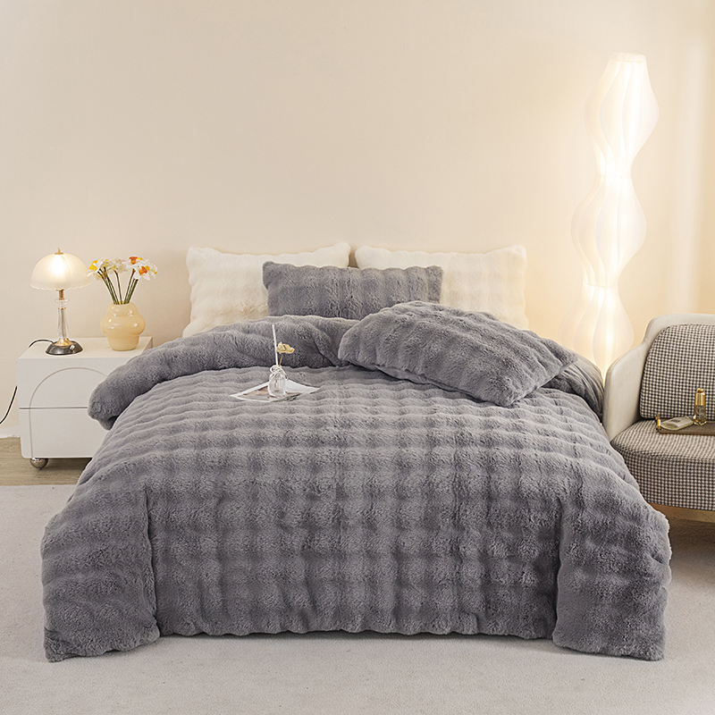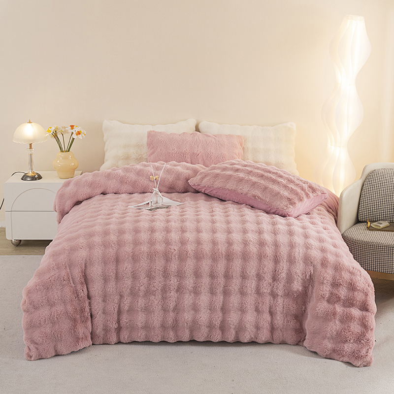(总)新月家纺(锦威郎) 2023新款AB面泡泡兔兔绒皮草四件套