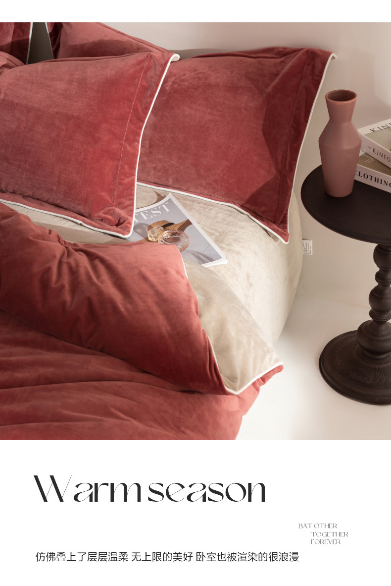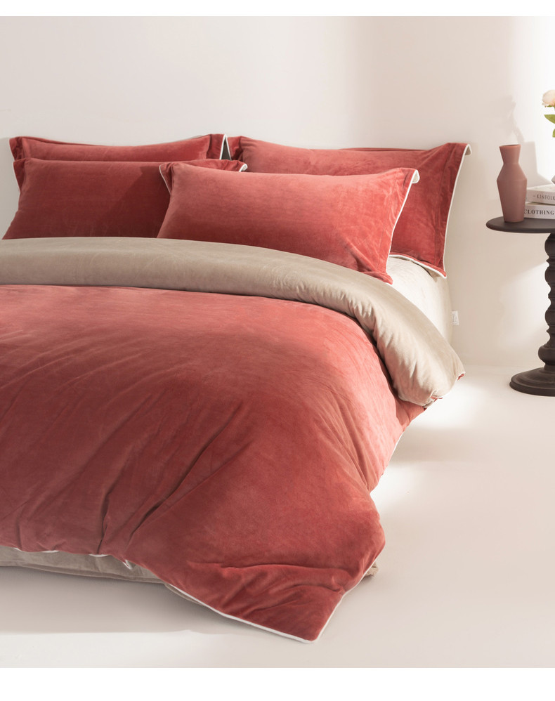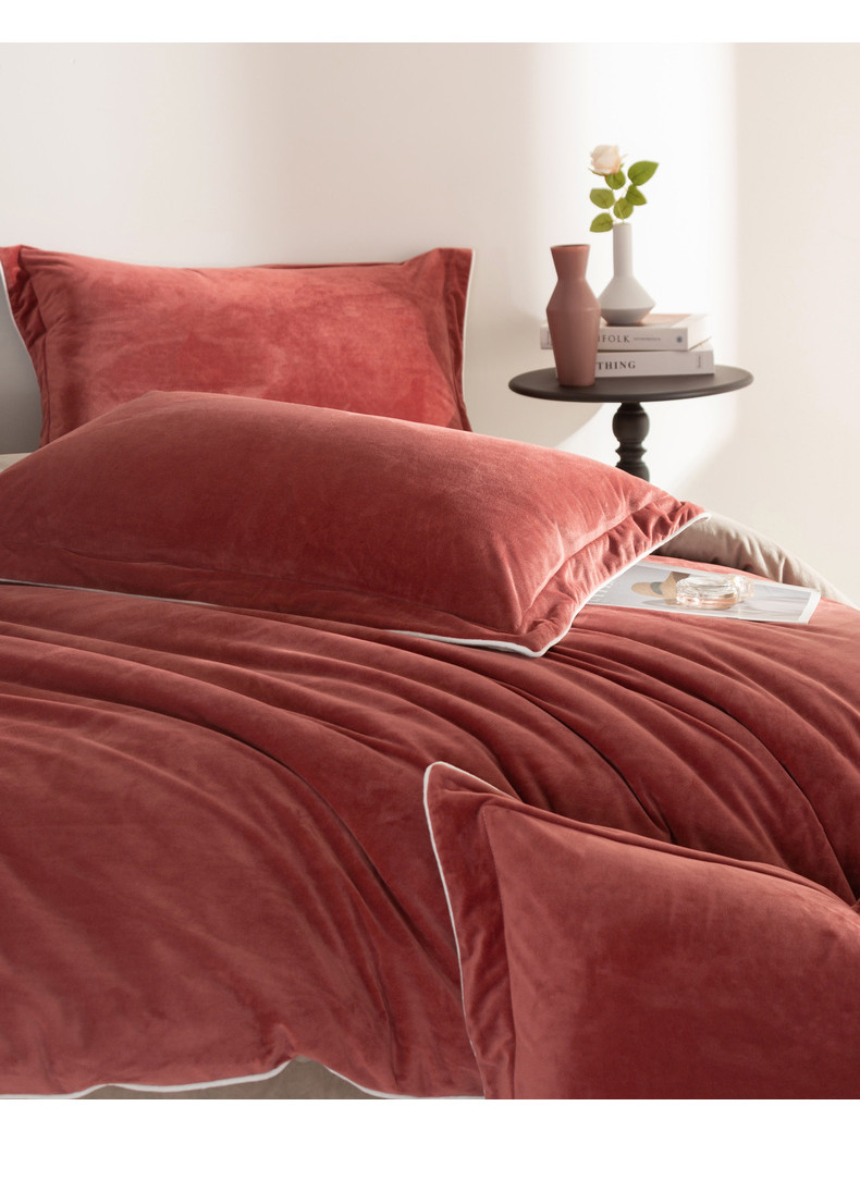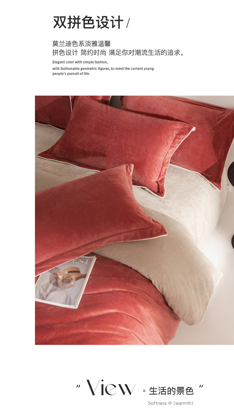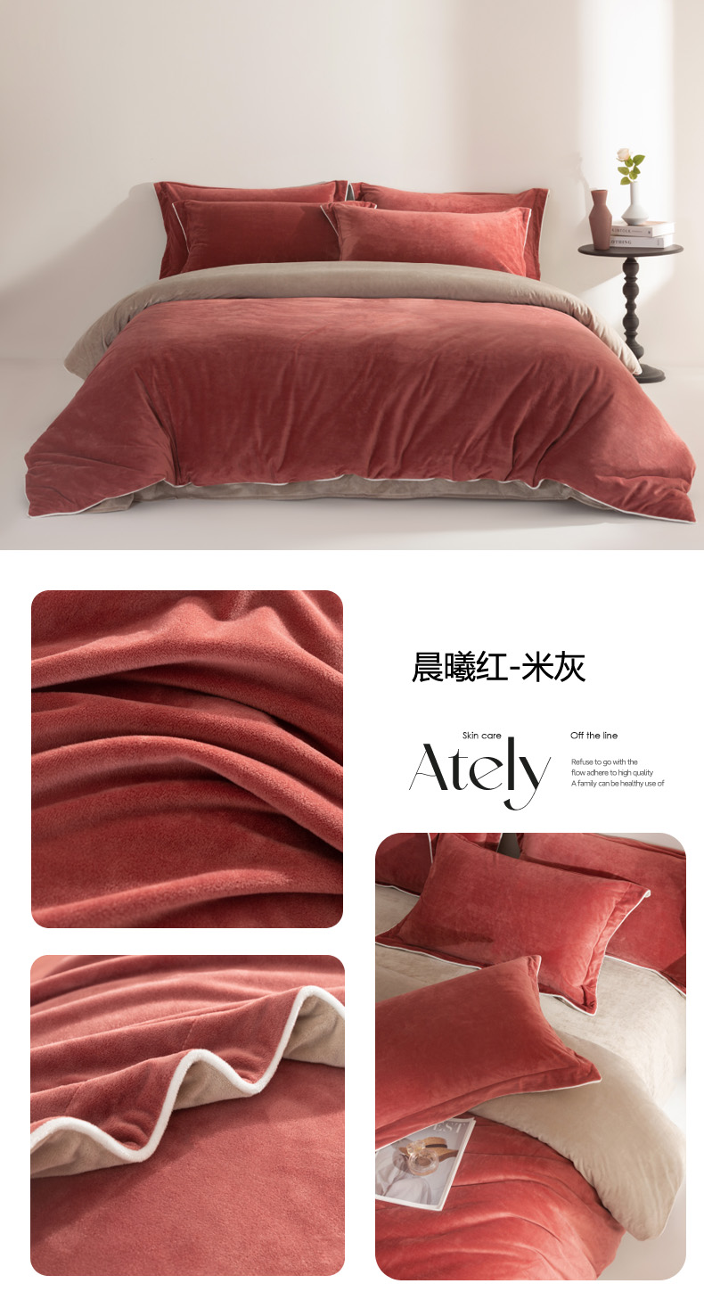 当前位置: 91家纺网 > 商品网购 > 床品套件 > 四件套 > 磨绒四件套 > 万盛家纺 2025新款德芙绒牛奶绒法莱双拼四件套 晨曦红-米灰