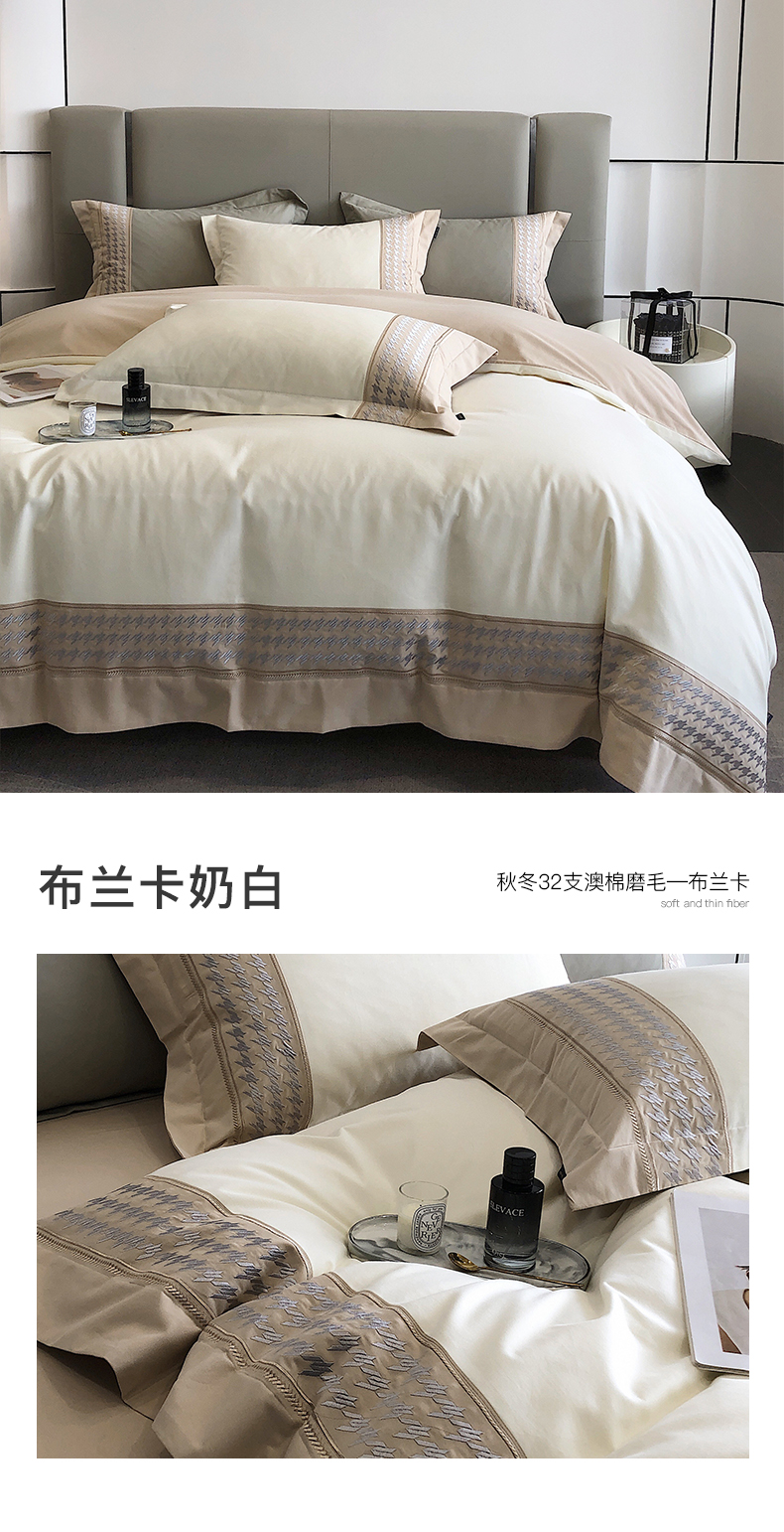 卡姿家纺 2023秋冬32支澳棉磨毛四件套—布兰卡 布兰卡奶白