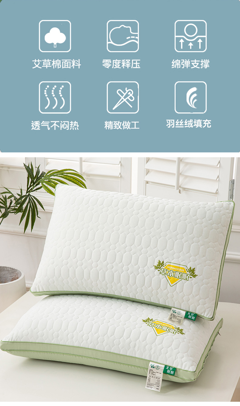 商品名称:(总)织布人2023新款枕芯天然草本清香艾草眠眠枕头护颈羽丝绒枕头枕芯