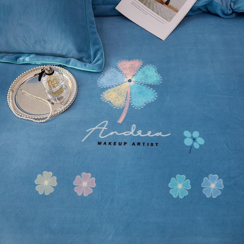 尚品凤凰2025新款高克重印花牛奶绒四件套-工艺款 花甜蜜语 灰