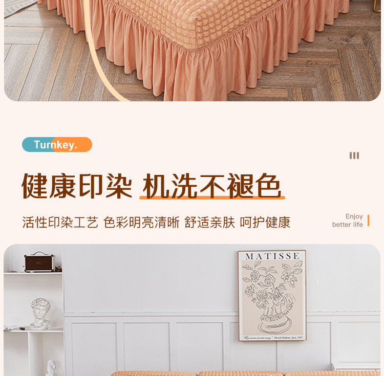 商品名称:丝绮鹿 2023新款爆米花裙边贵妃沙发套 蜜橙