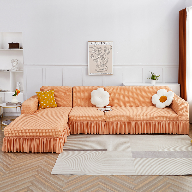 丝绮鹿 2023新款爆米花裙边贵妃沙发套 蜜橙