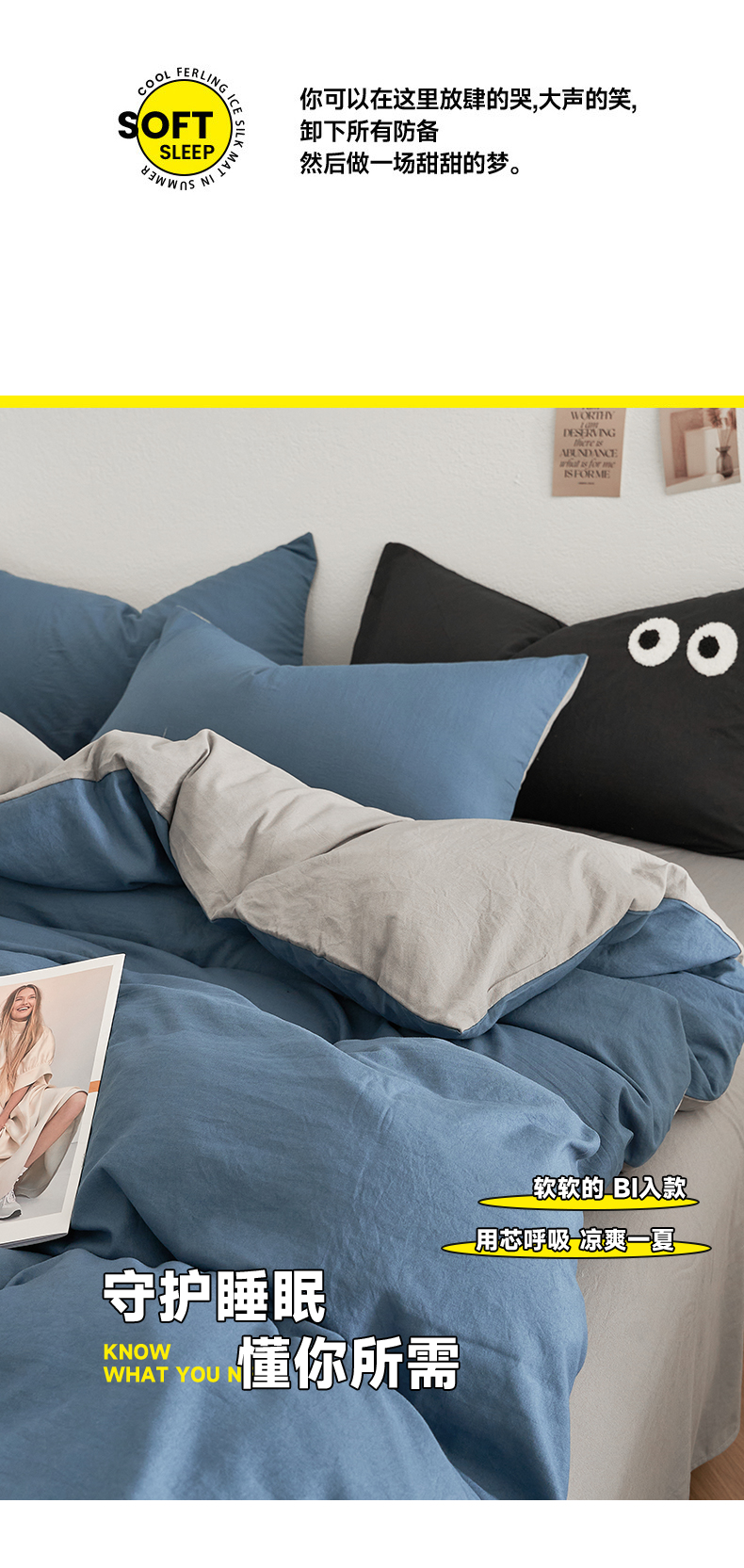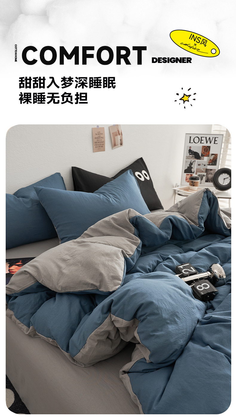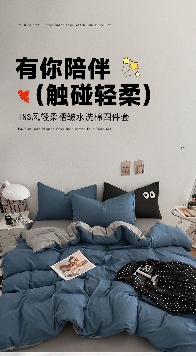 当前位置: 91家纺网 > 商品网购 > 床品套件 > 四件套 > 水洗棉四件套 > 卡迪熊家纺 2024新款ins风超柔褶皱亲肤磨毛水洗m四件套双拼系列 宝蓝浅灰