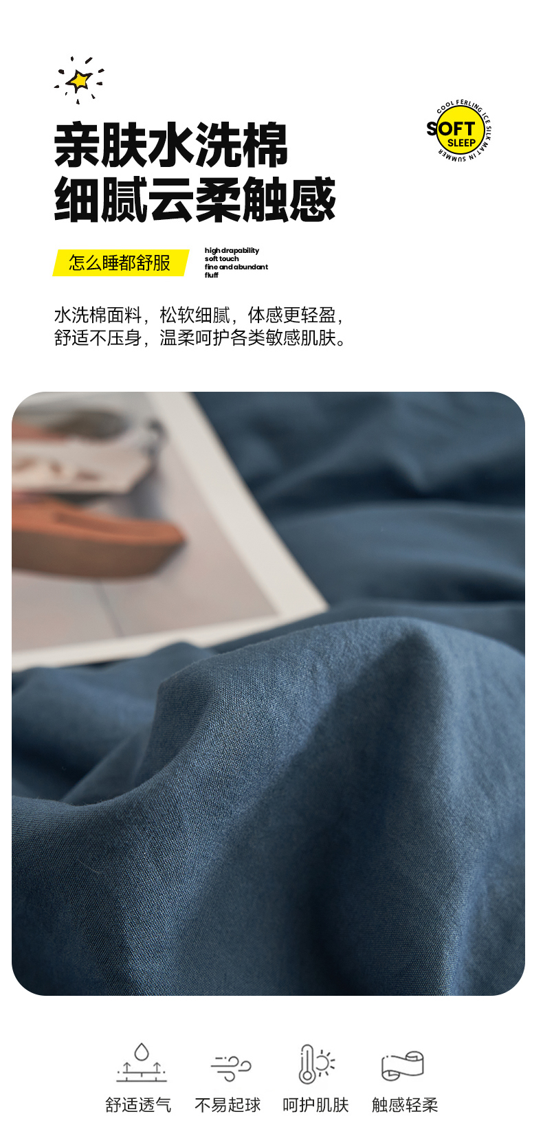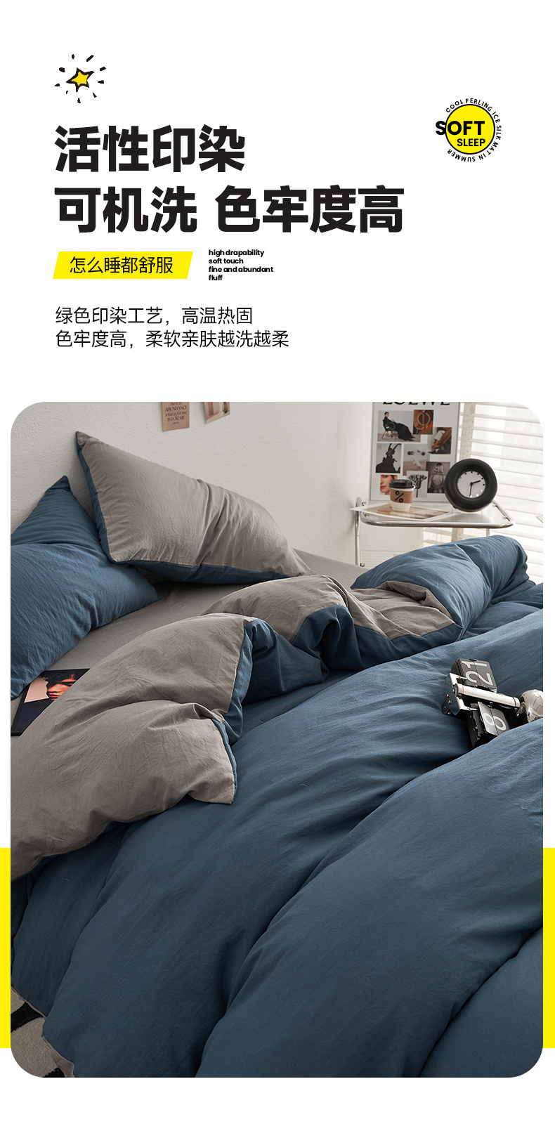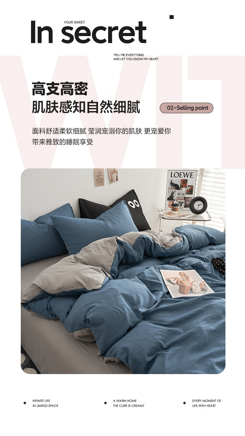 当前位置: 91家纺网 > 商品网购 > 床品套件 > 四件套 > 水洗棉四件套 > 卡迪熊家纺 2024新款ins风超柔褶皱亲肤磨毛水洗m四件套双拼系列 宝蓝浅灰