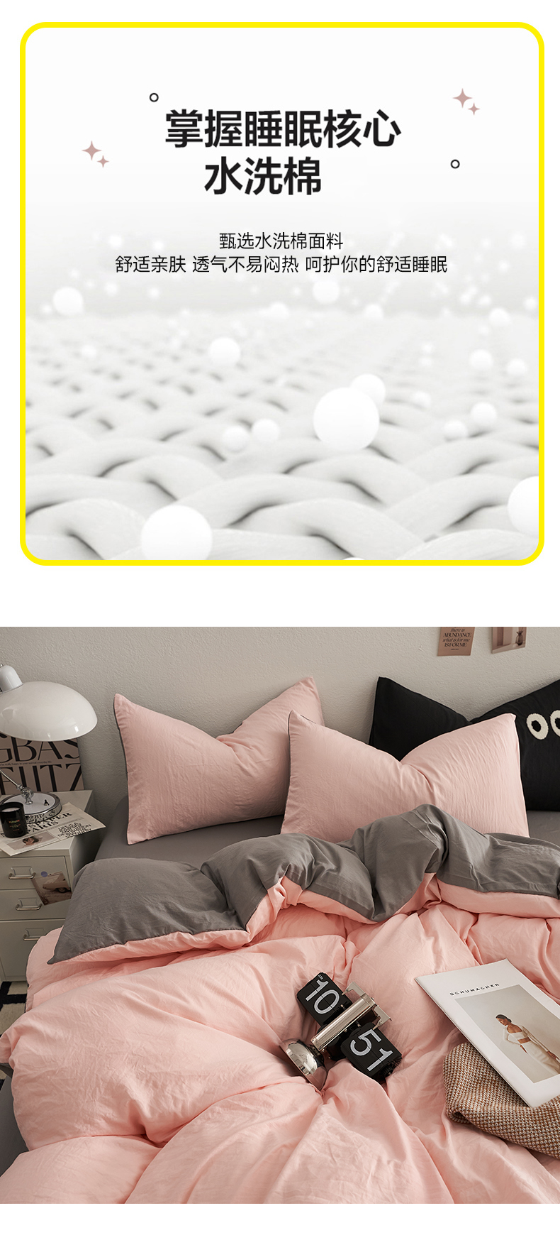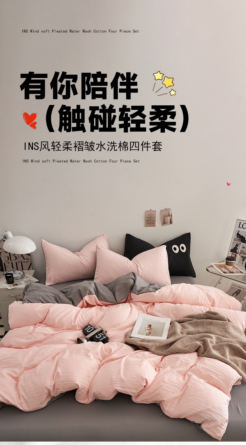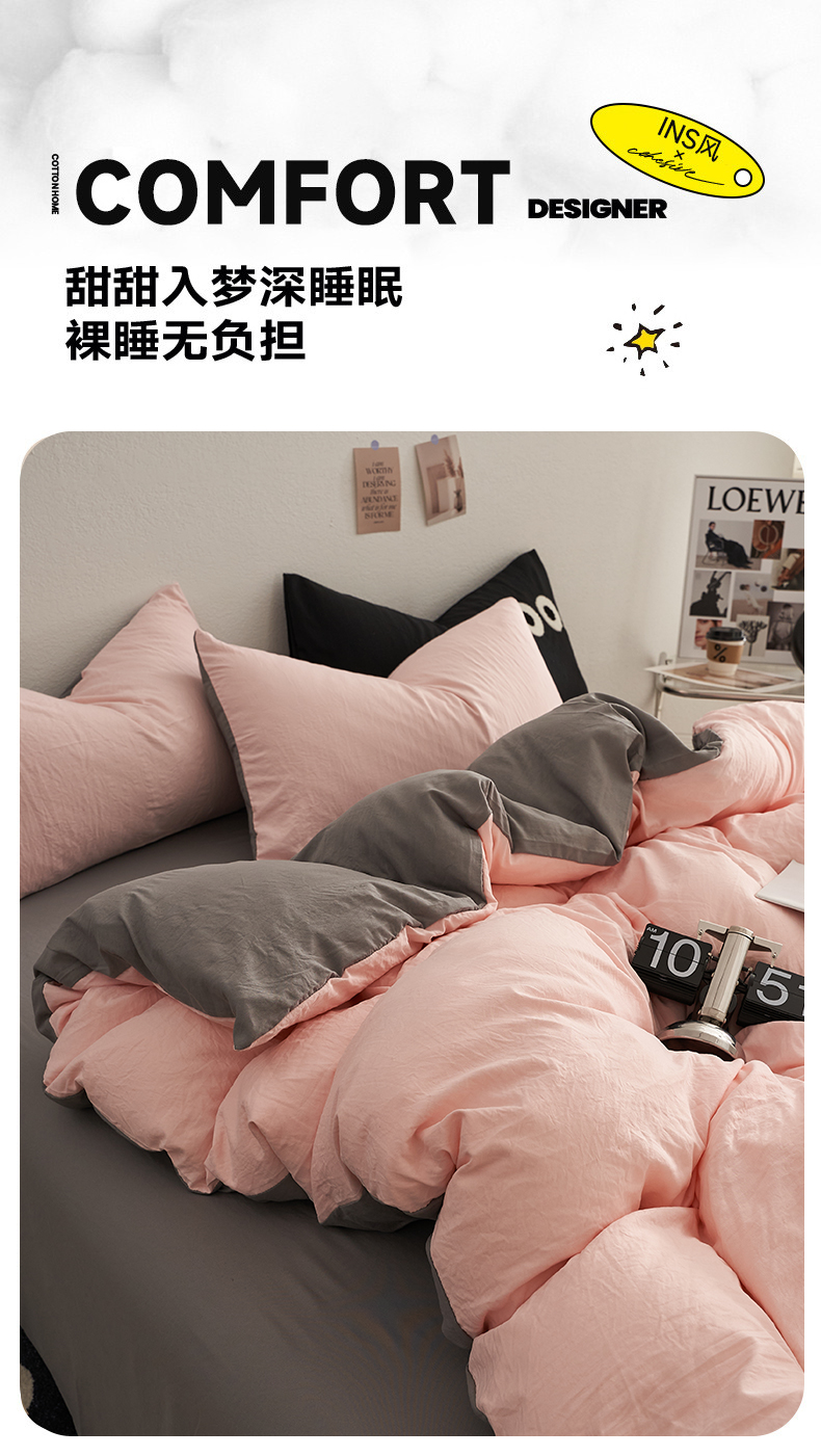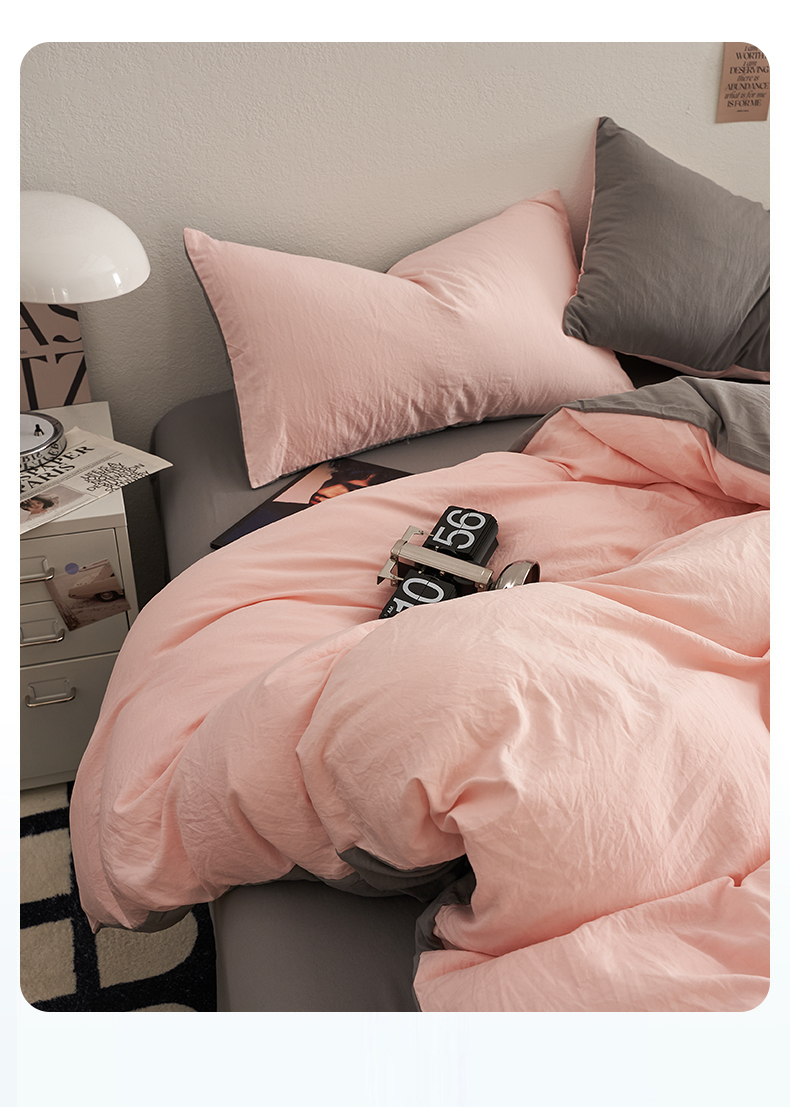 当前位置: 91家纺网 > 商品网购 > 床品套件 > 四件套 > 水洗棉四件套 > 卡迪熊家纺 2024新款ins风超柔褶皱亲肤磨毛水洗m四件套双拼系列 浅粉灰
