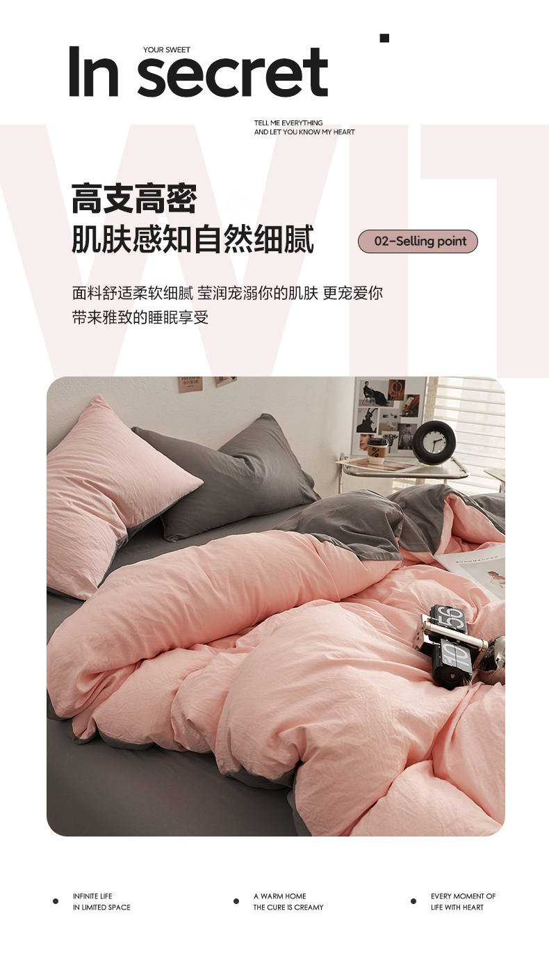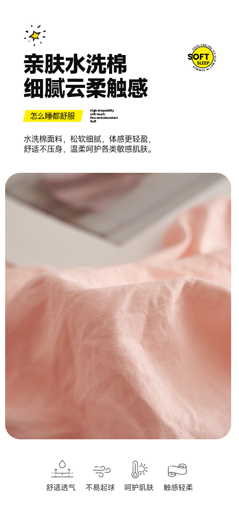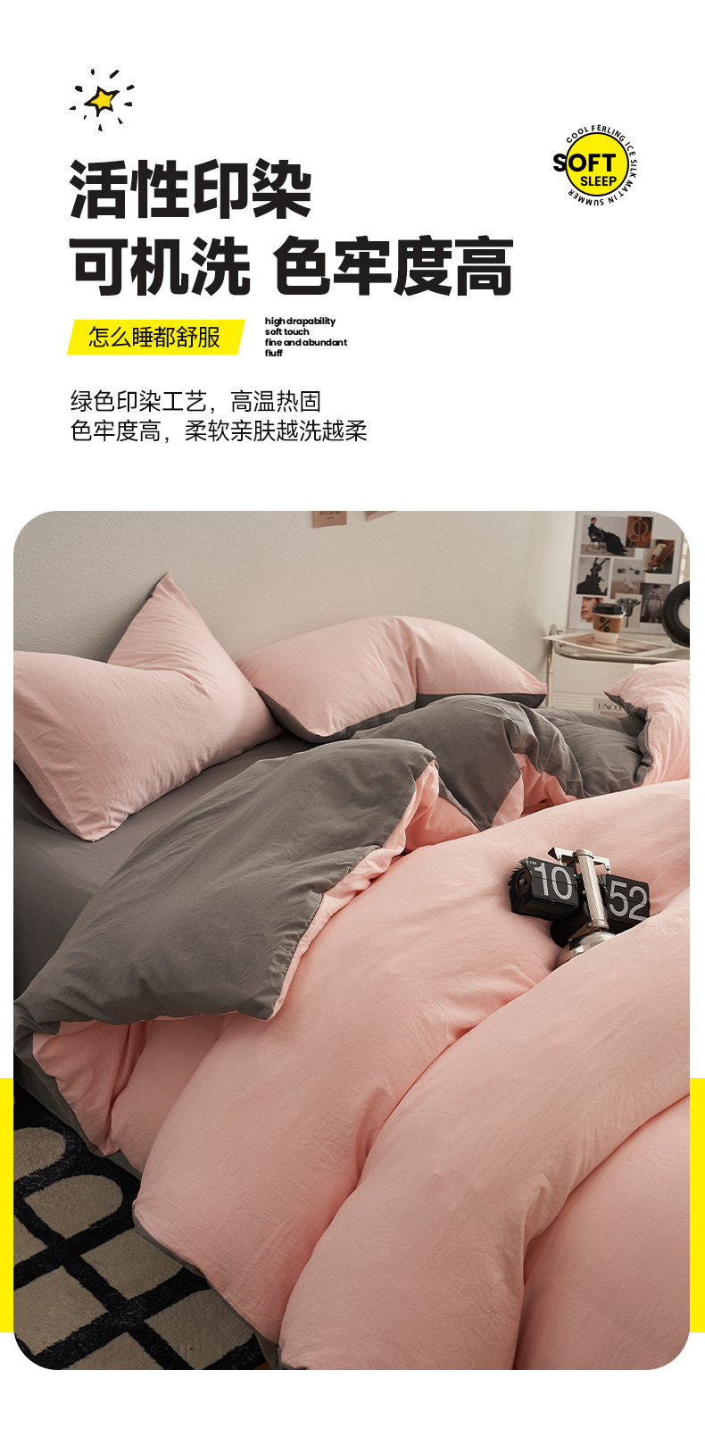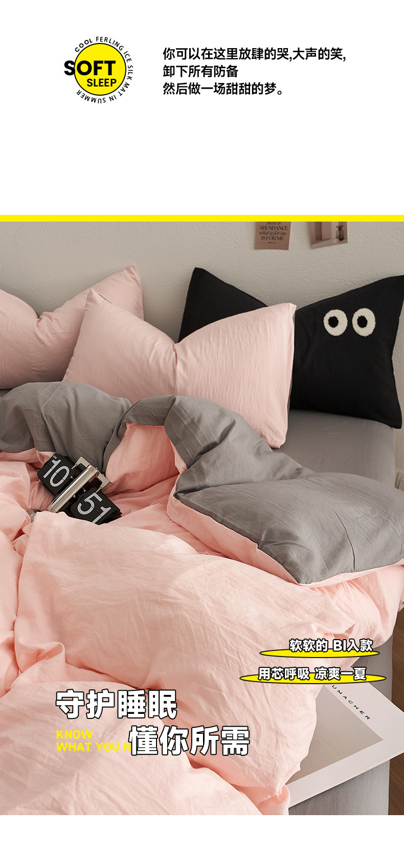 当前位置: 91家纺网 > 商品网购 > 床品套件 > 四件套 > 水洗棉四件套 > 卡迪熊家纺 2024新款ins风超柔褶皱亲肤磨毛水洗m四件套双拼系列 浅粉灰