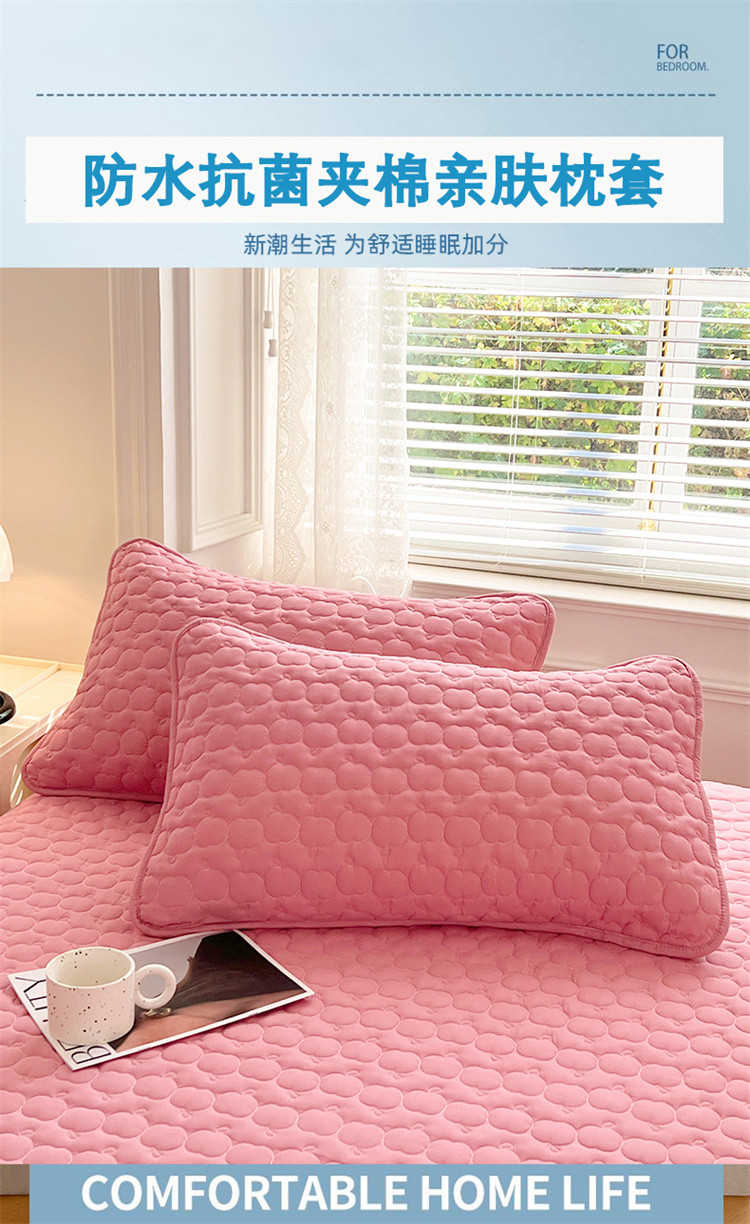 商品名称:新款防水抗菌夹棉枕套防口水头油枕芯套 苹果款-玫红