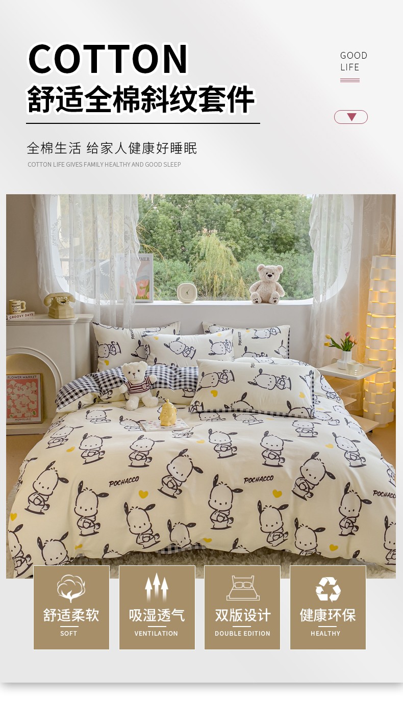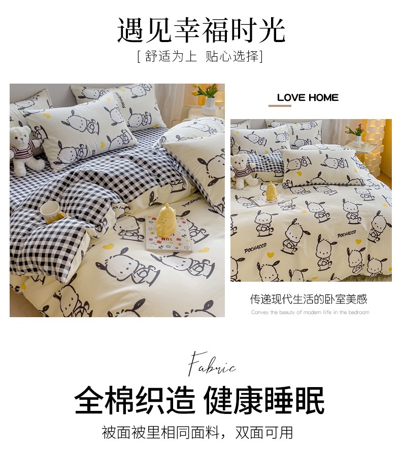 当前位置: 91家纺网 > 商品网购 > 床品套件 > 四件套 > 全棉普通四件套 > 金丝鸟家纺 2023新款全棉印花可爱卡通帕恰狗四件套 爱心黑白帕恰狗