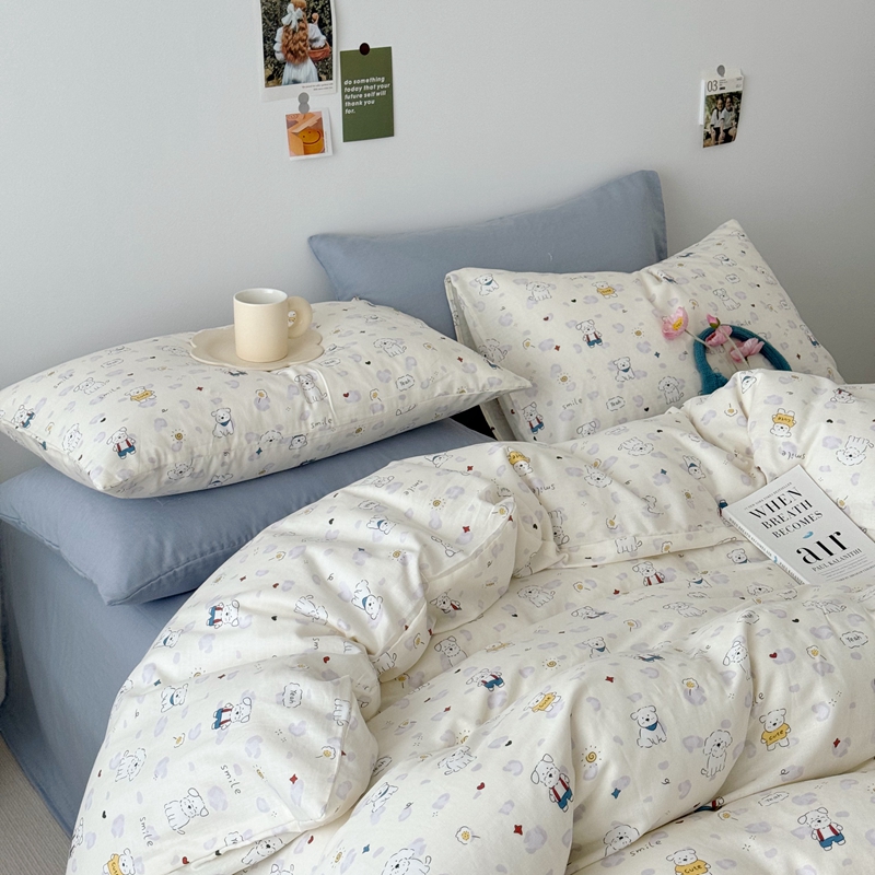 商品名称:安莱生活 2024新款高奢全棉新疆棉双层纱四件套 小白