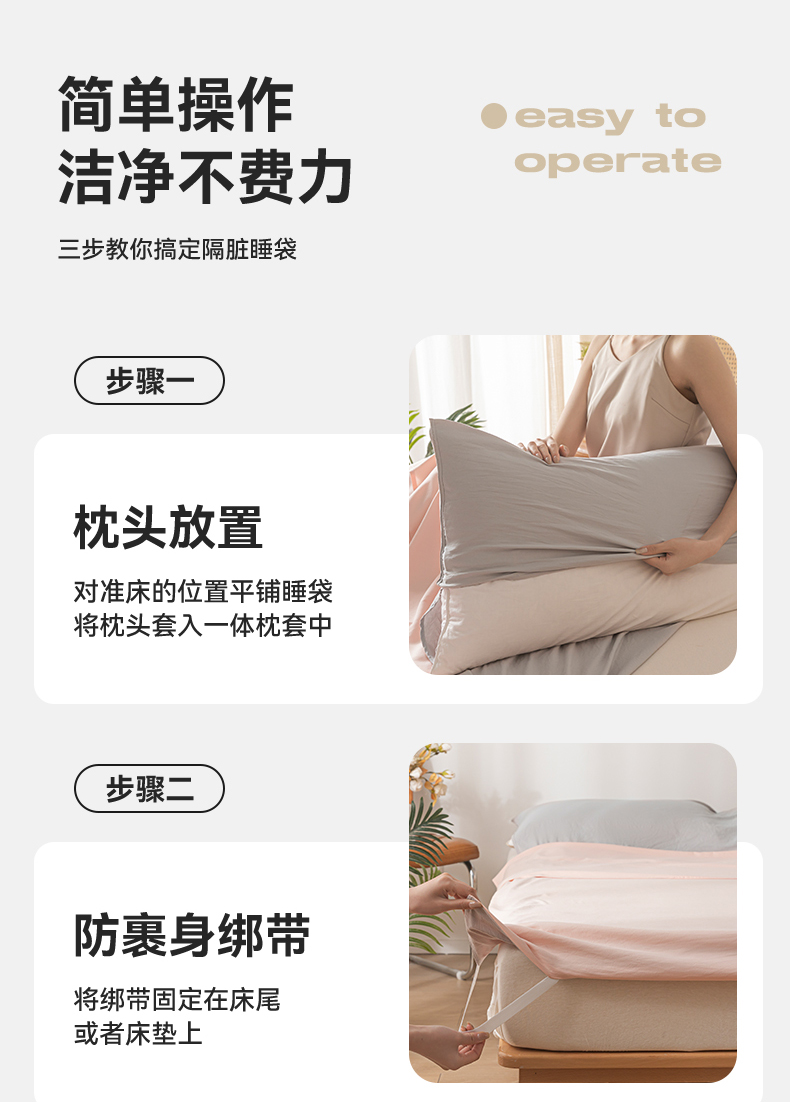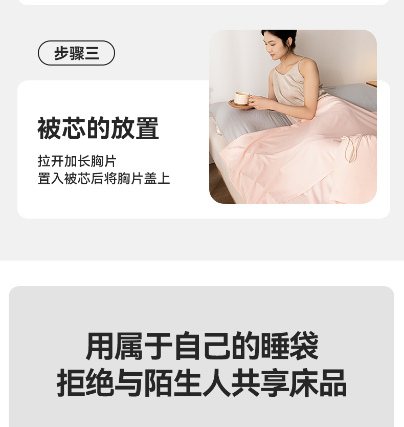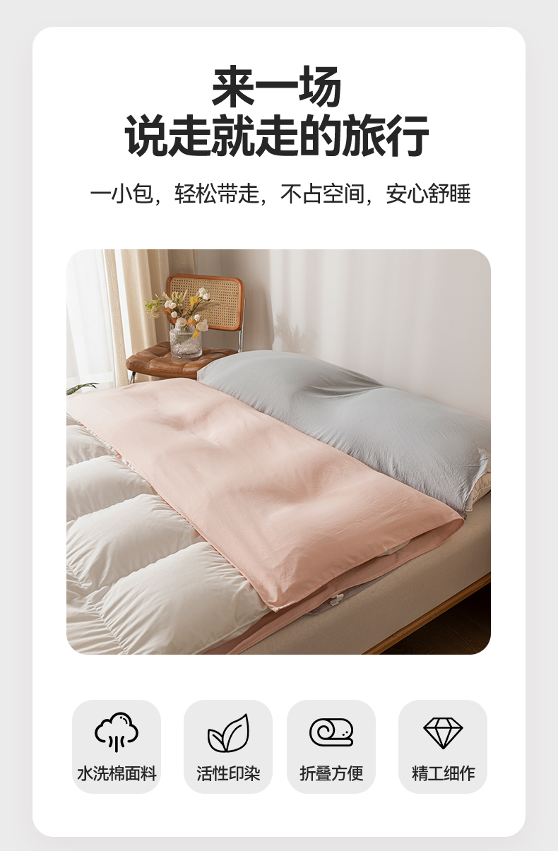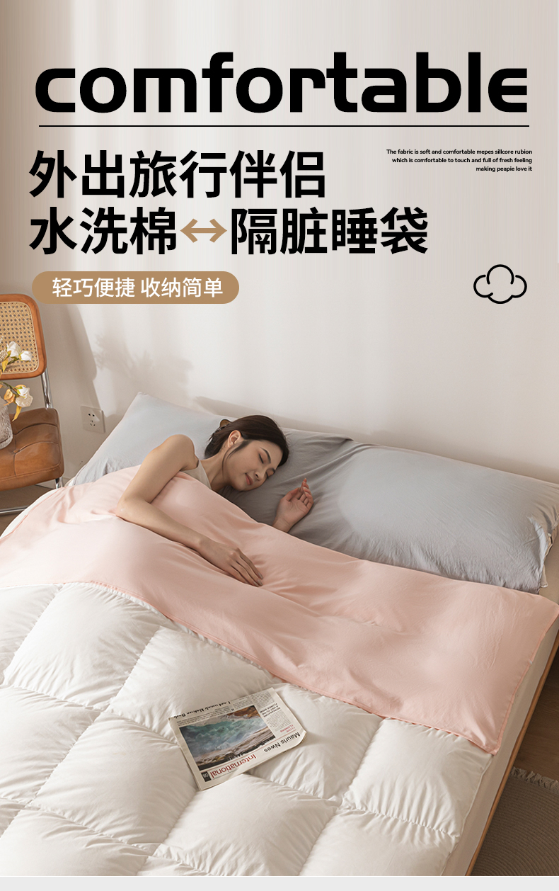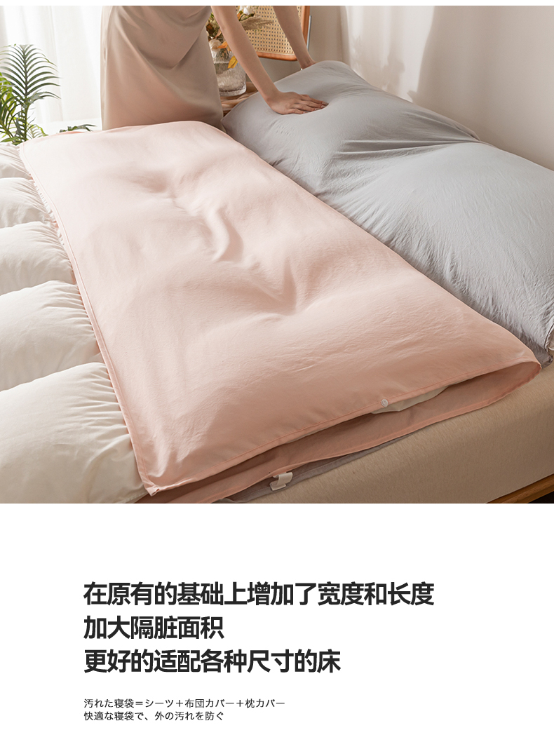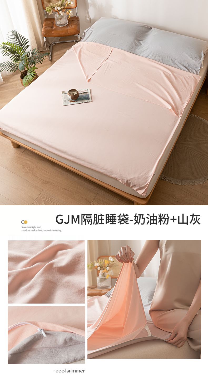 商品名称:古吉梦 2024新款水洗棉隔脏睡袋 奶油粉+山灰