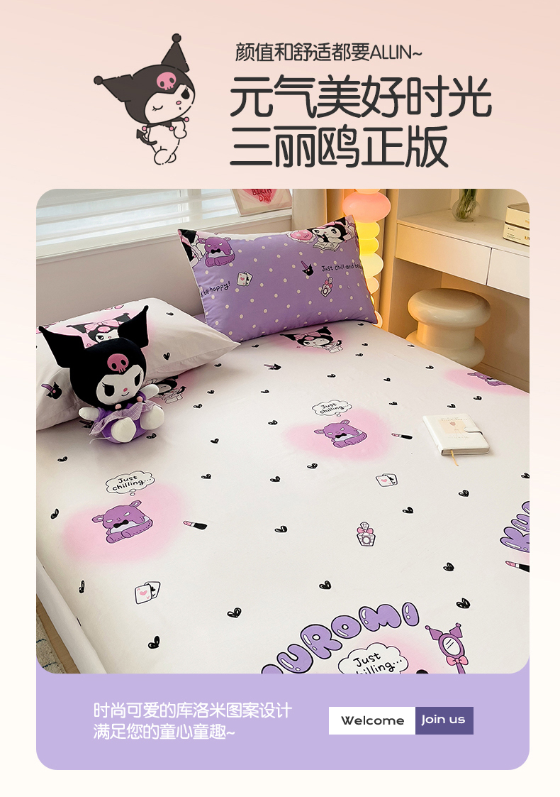 名兮家居 2024新款三丽鸥全棉床笠【含正版防伪标】 美美库洛米
