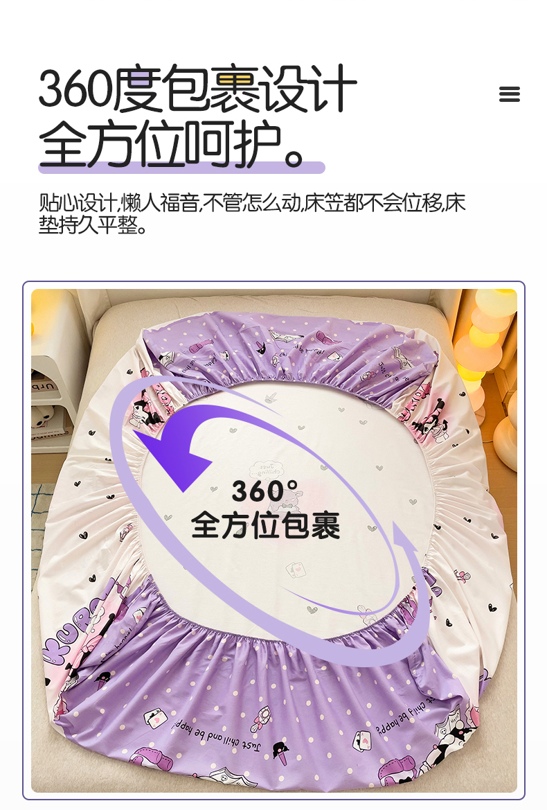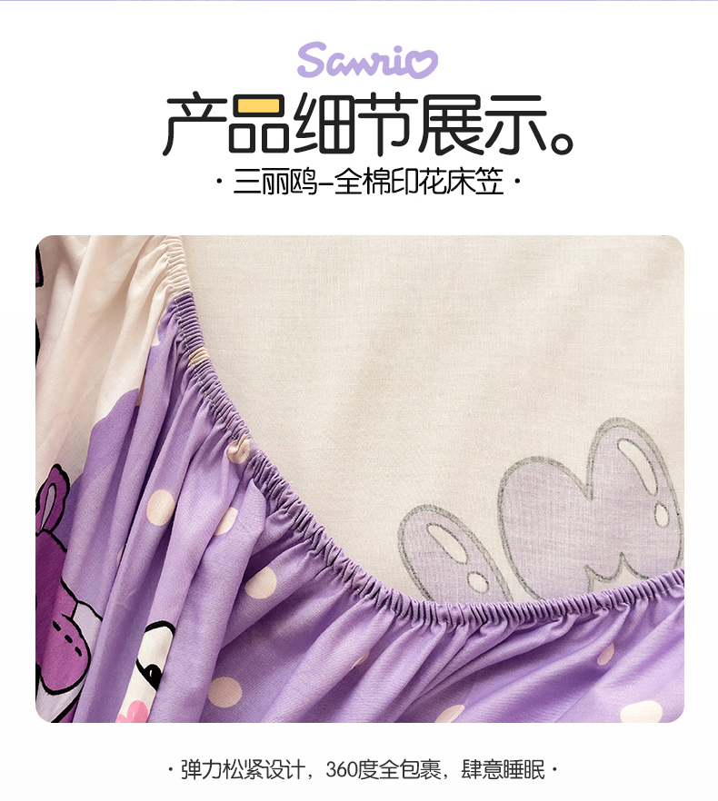 • 91家纺网 家纺一手货源 找家纺 名兮家居 2024新款三丽鸥全棉床笠【含正版防伪标】 美美库洛米