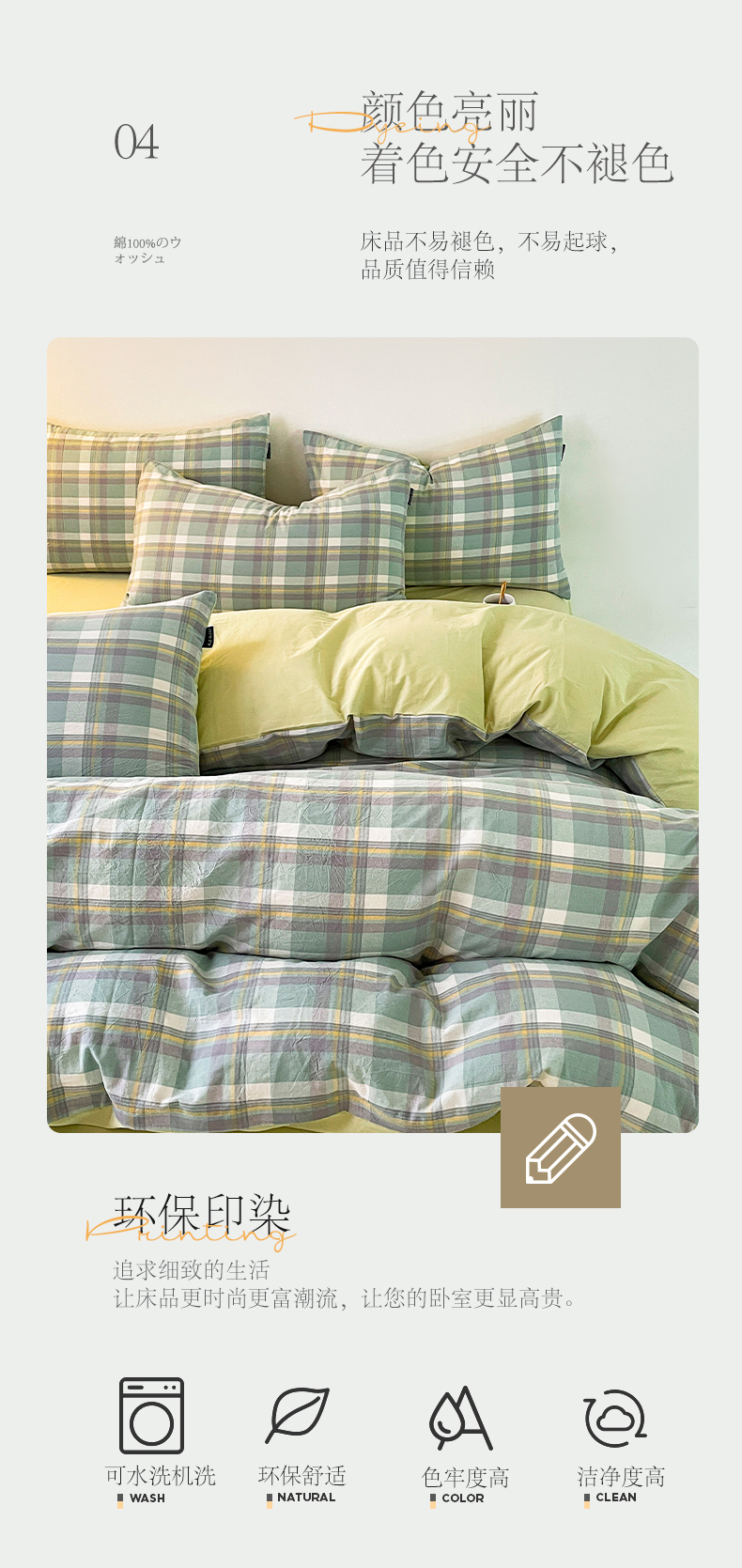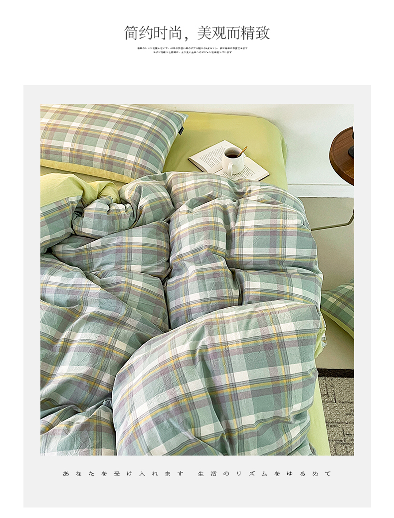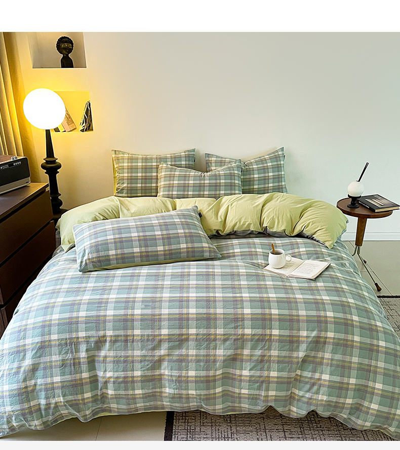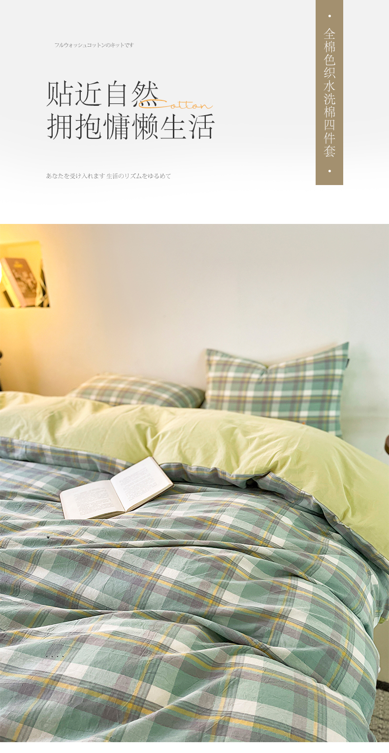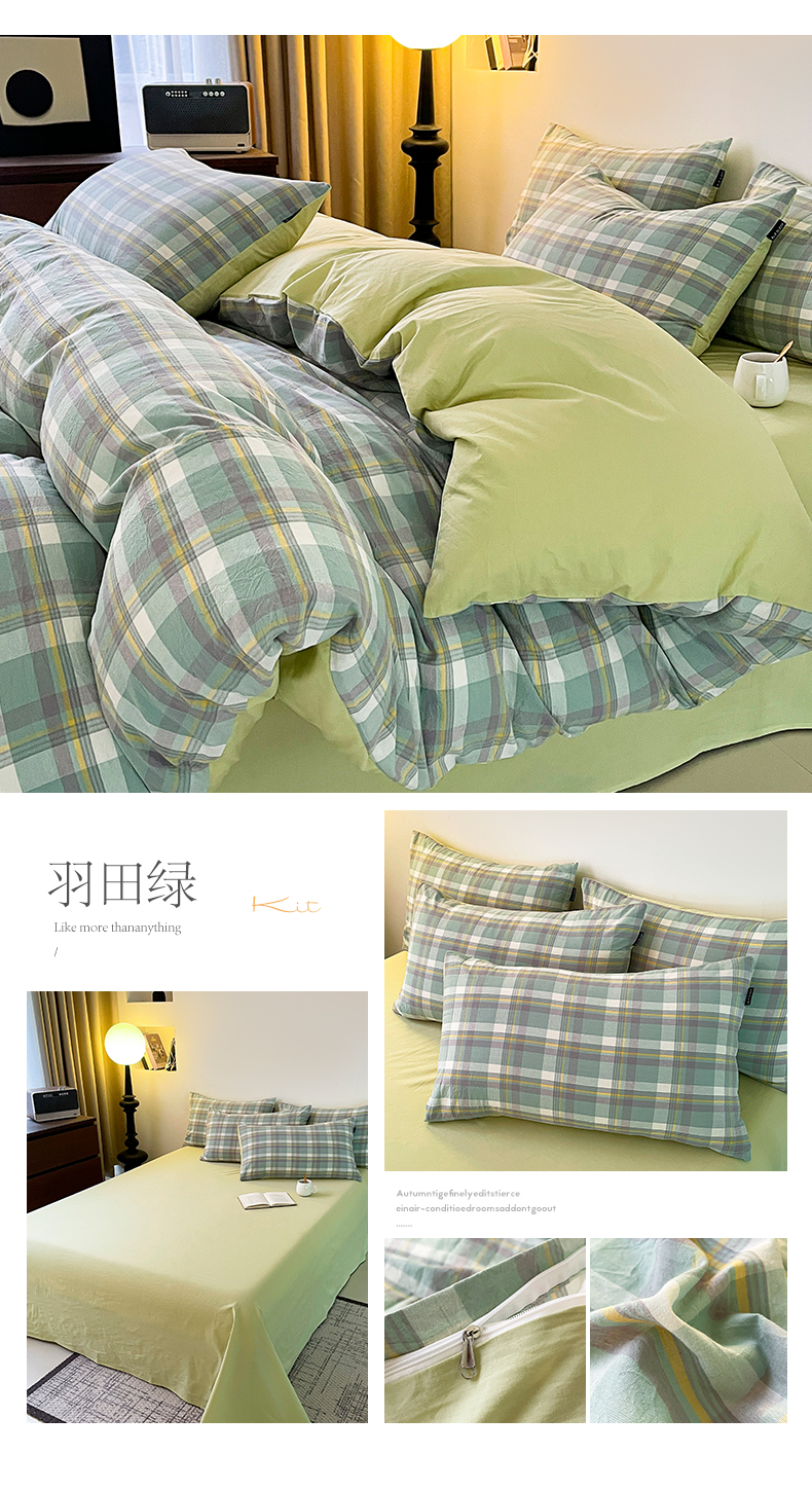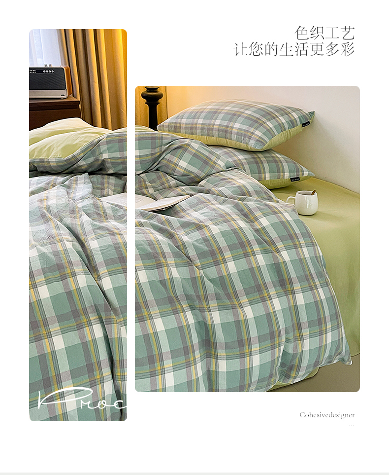 商品名称:小懒猪 2024新款色织水洗棉格子款四件套 羽田绿