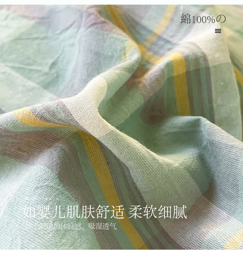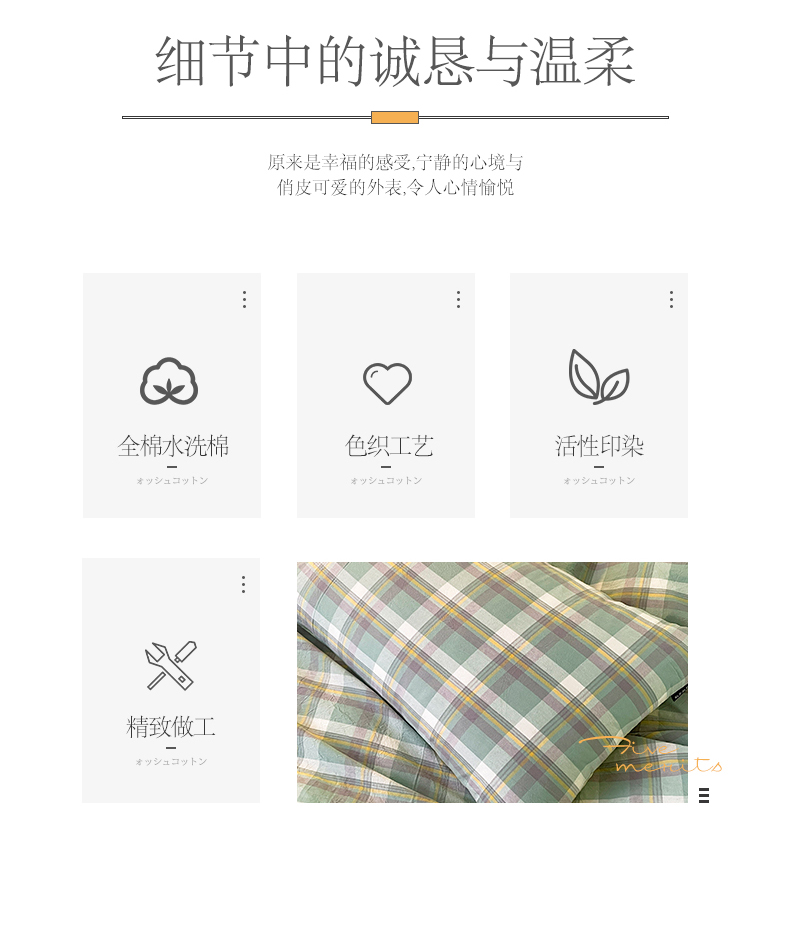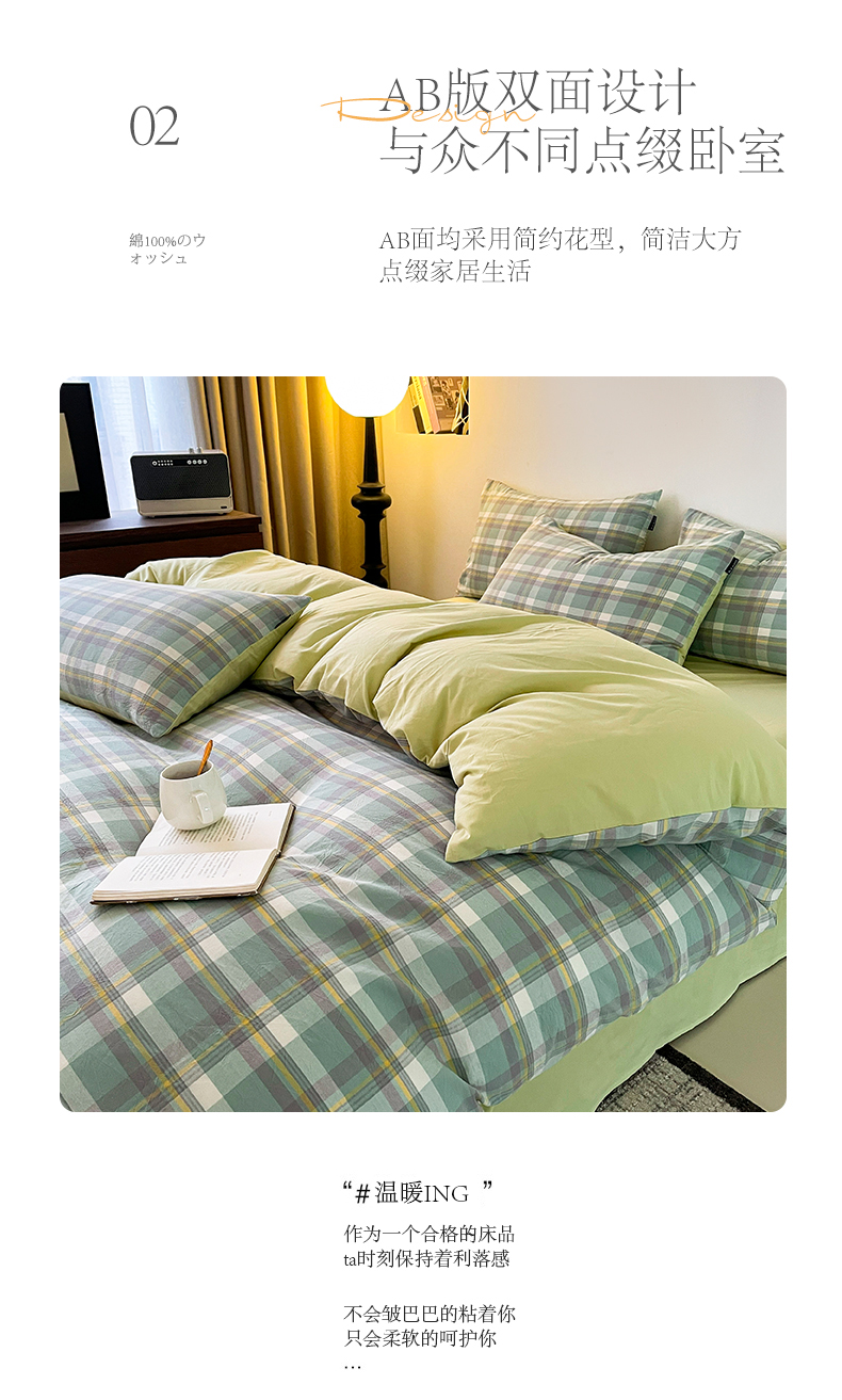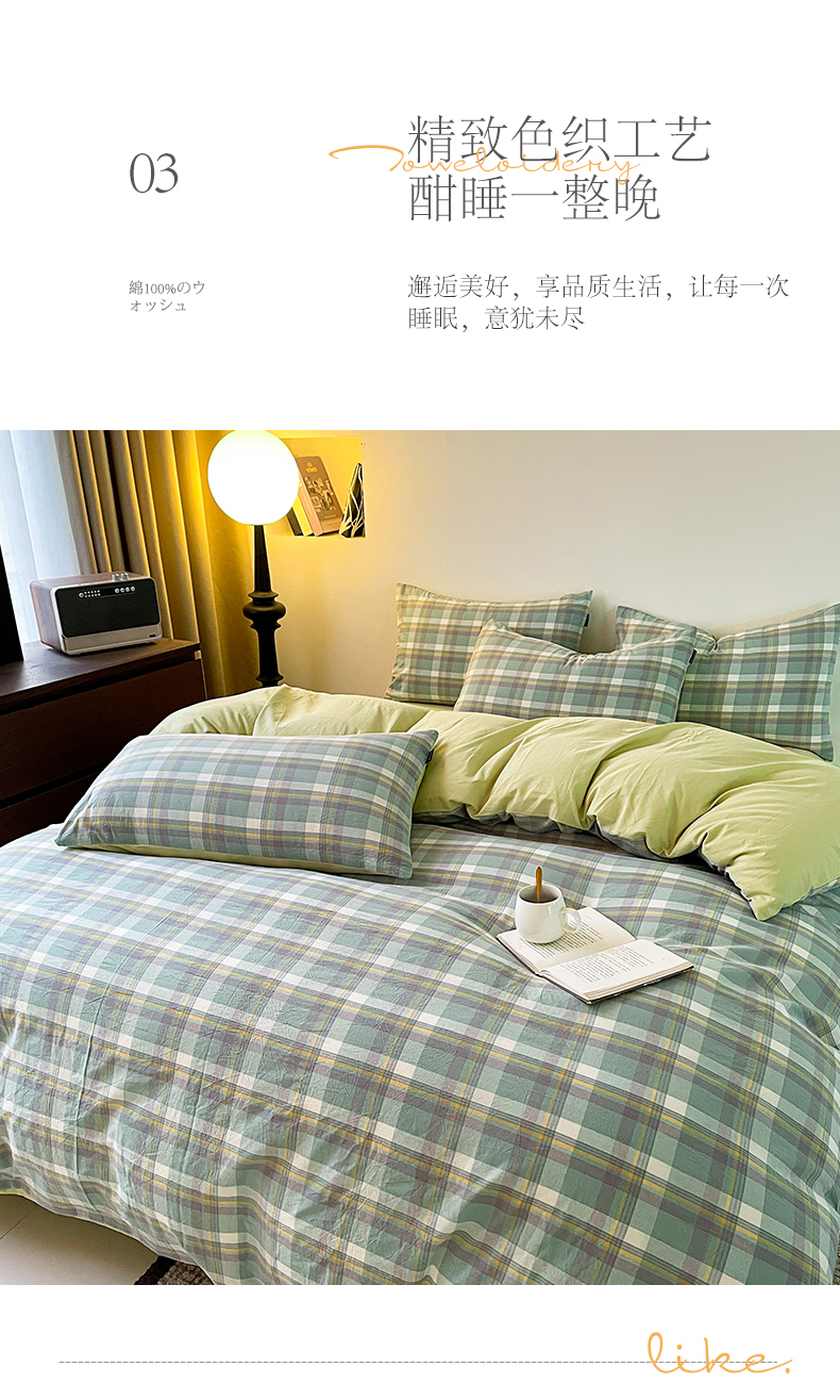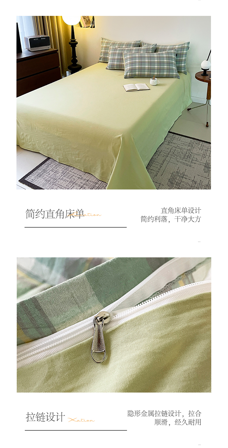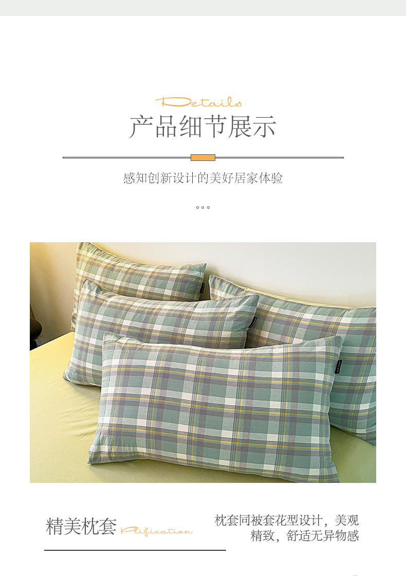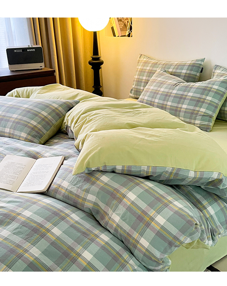 商品名称:小懒猪 2024新款色织水洗棉格子款四件套 羽田绿