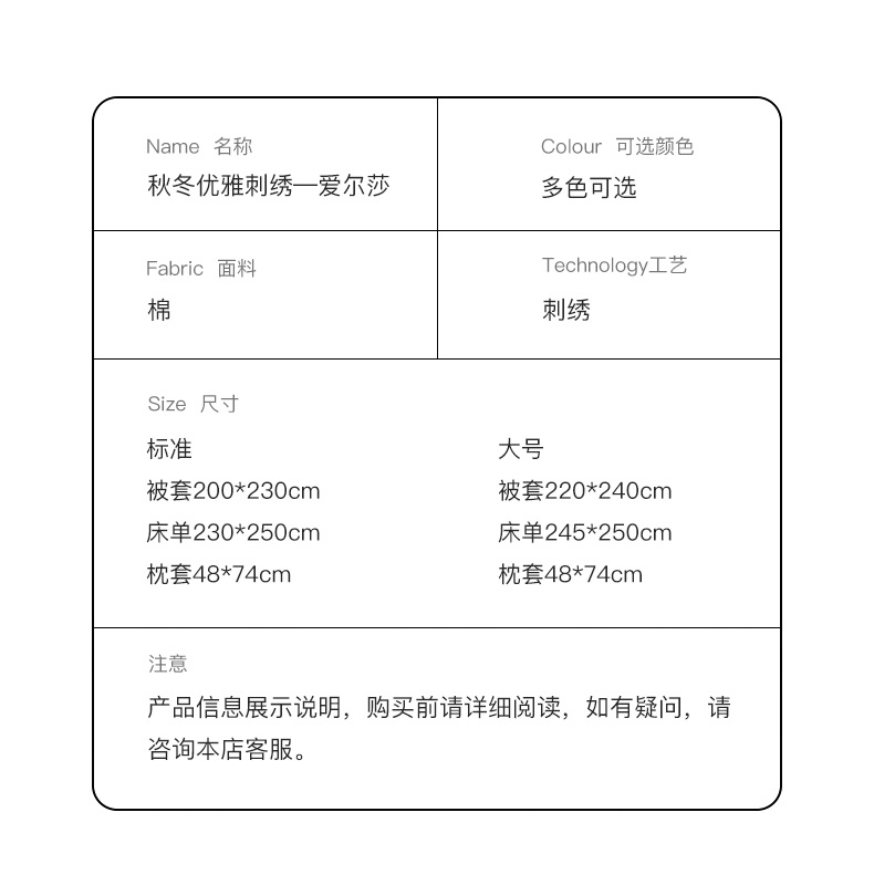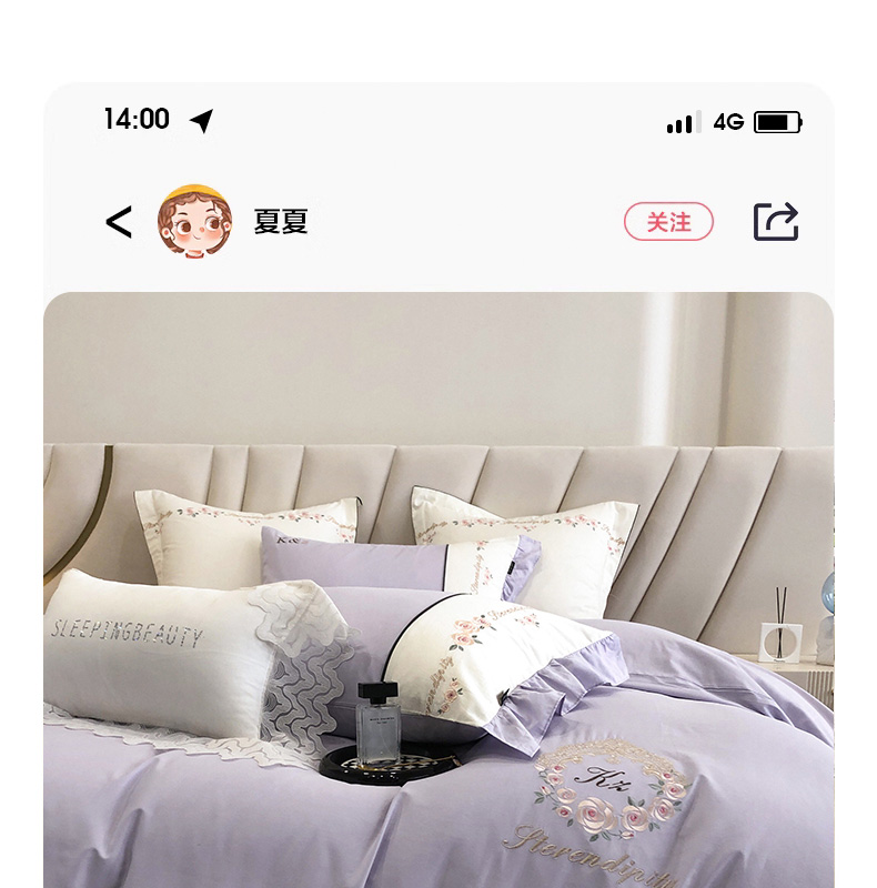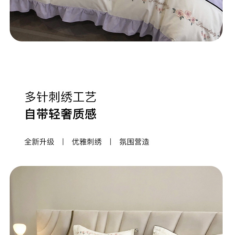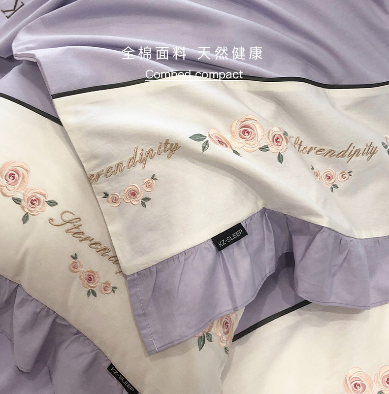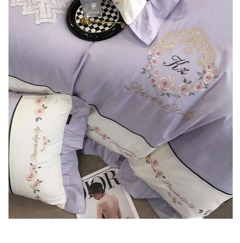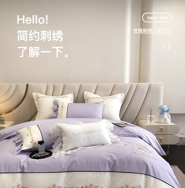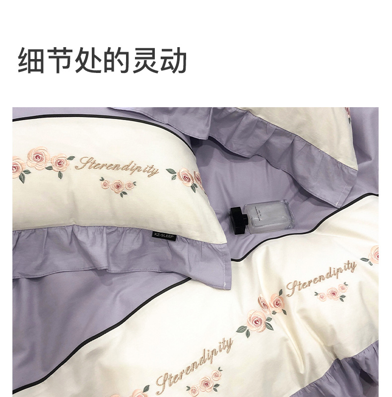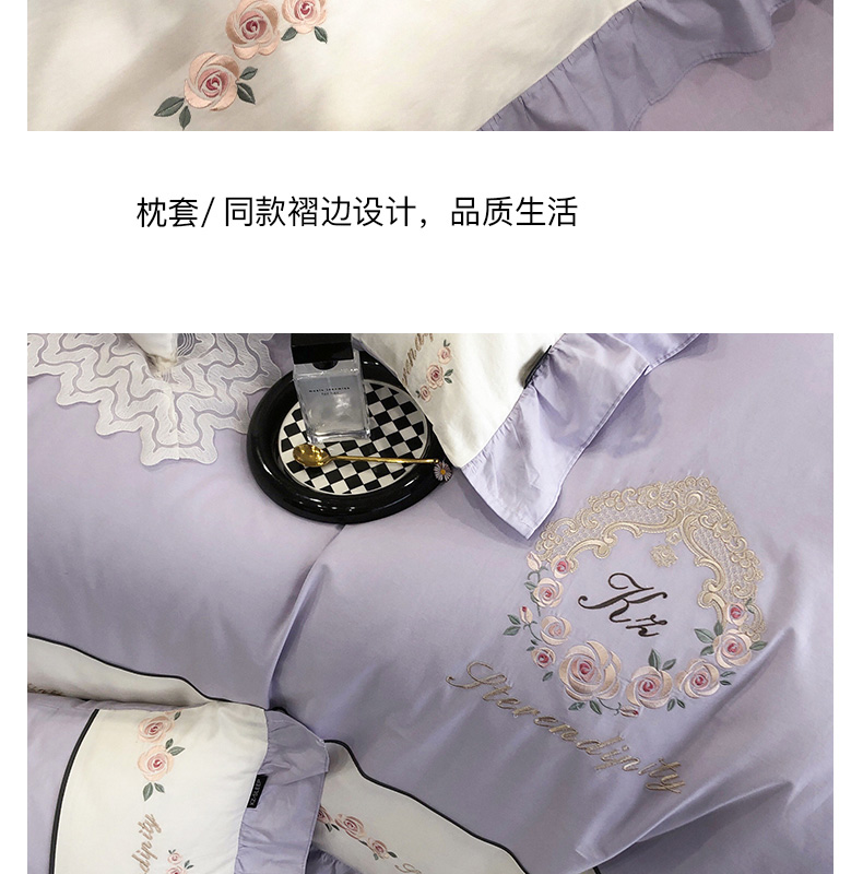 商品名称:卡姿家纺 2024新款春夏全棉优雅刺绣四件套-爱尔莎 爱尔莎-紫