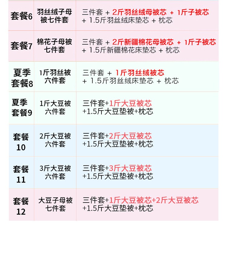 3斤羽丝绒六件套 | ¥98.00 |
