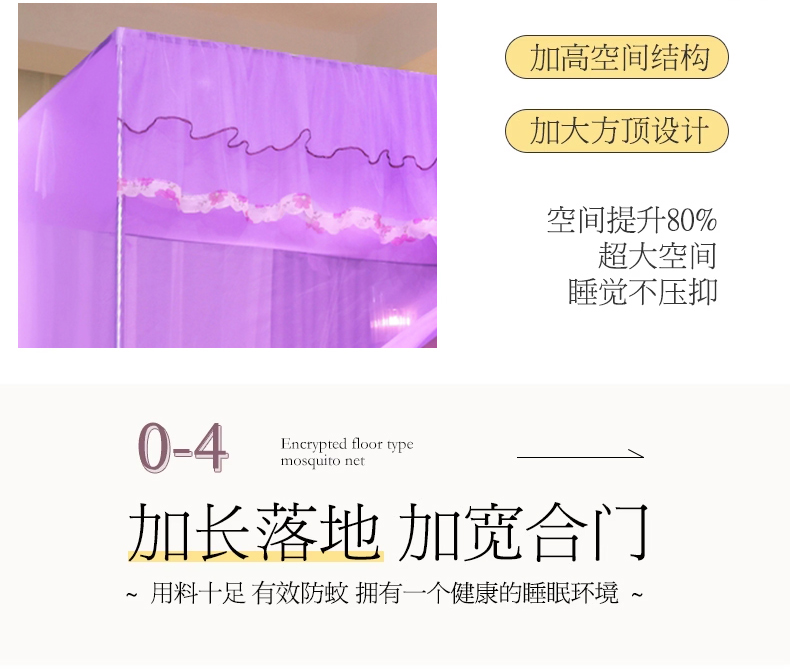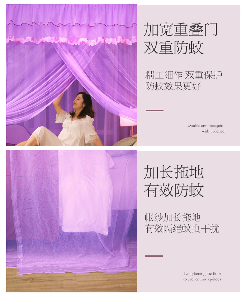 当前位置: 91家纺网 > 商品网购 > 床上用品 > 蚊帐 > 坐床式蚊帐 > 初心家纺 2025新款高效防蚊落地单开门花边蚊帐--舒夏系列 舒夏单开门紫色(网纱顶)