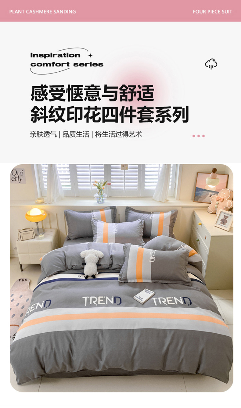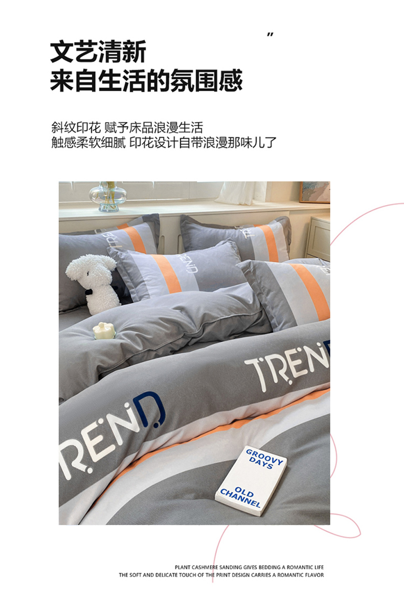 当前位置: 91家纺网 > 商品网购 > 床品套件 > 四件套 > 化纤普通四件套 > 简冠家纺 2023直播爆款北欧风亲肤植物羊绒磨毛四件套 动感韵律