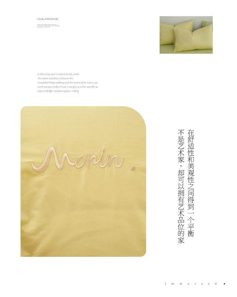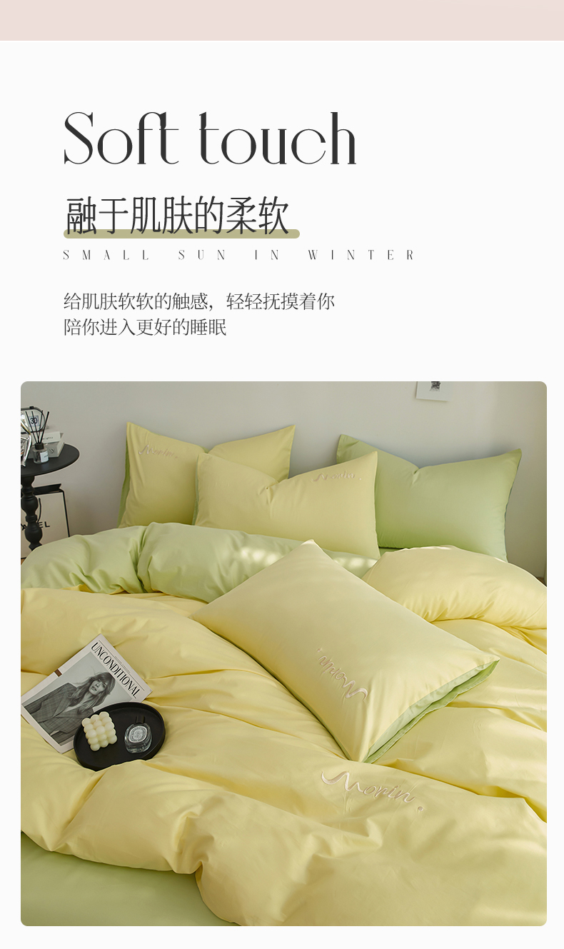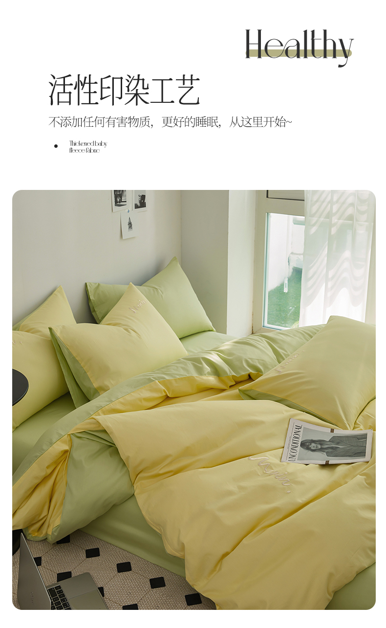 多品家纺 2024新款全棉纯色绣花四件套 鹅黄+奶绿