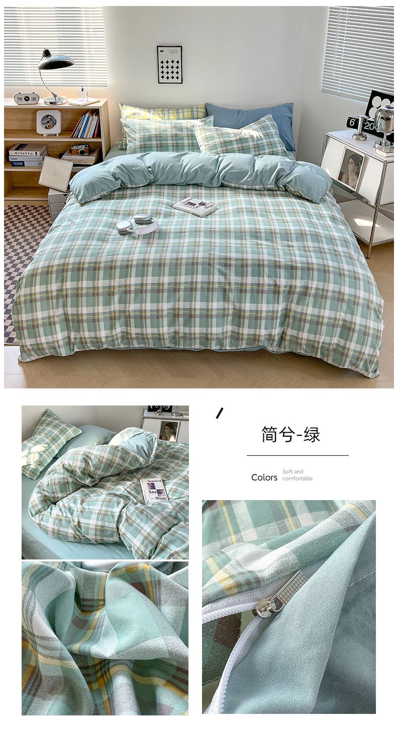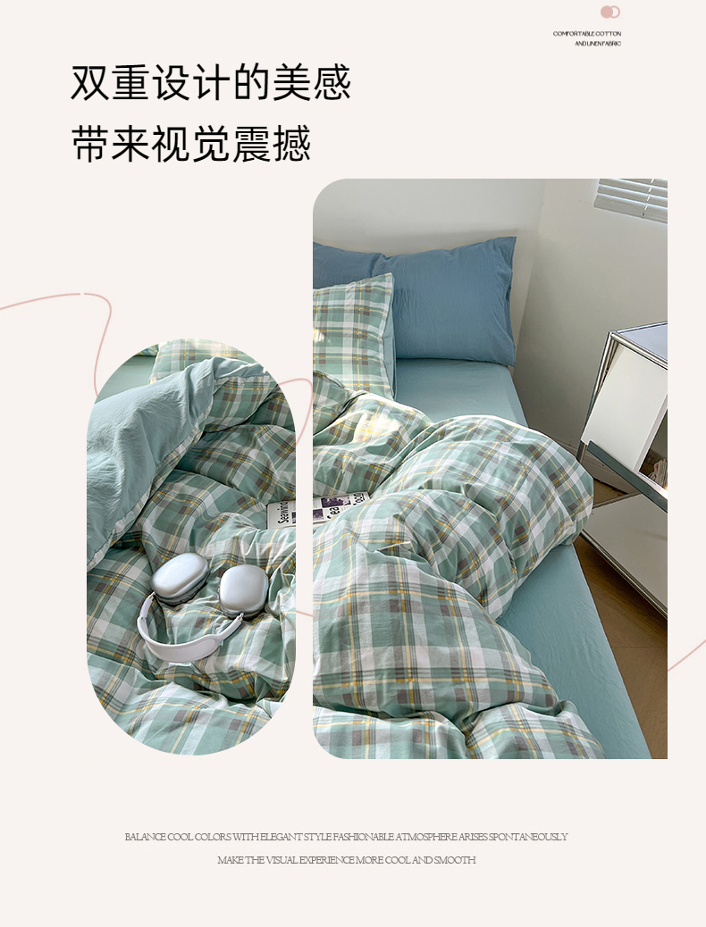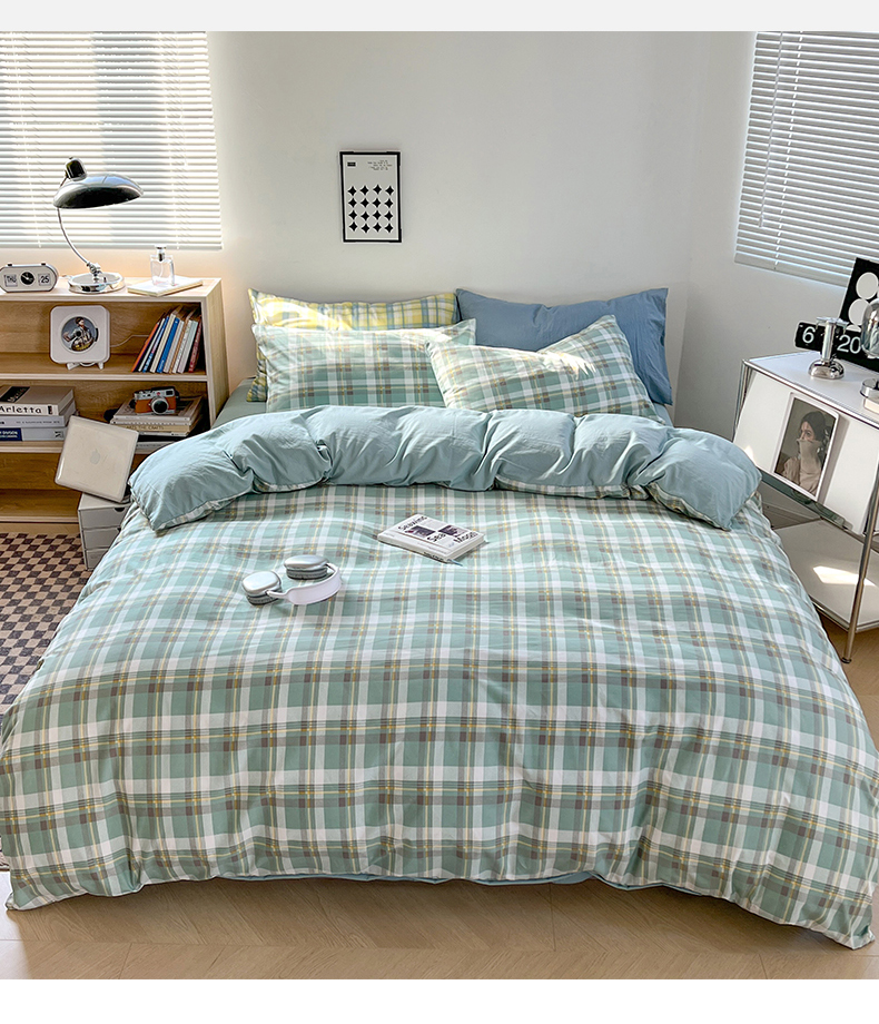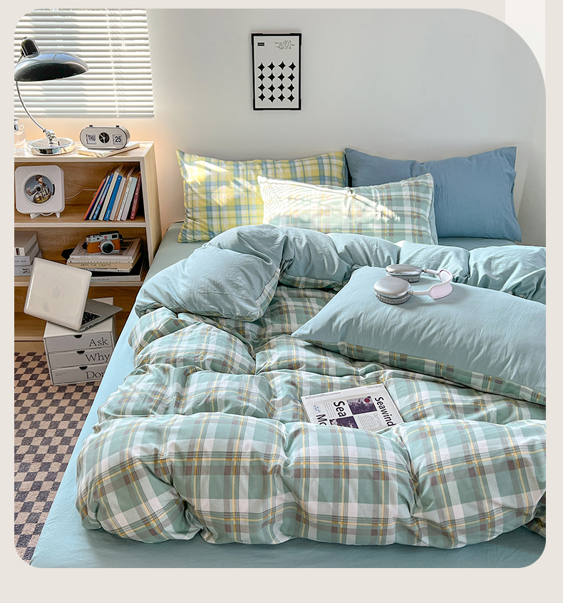 当前位置: 91家纺网 > 商品网购 > 床品套件 > 四件套 > 水洗棉四件套 > 贝拉梦家纺 2024新款日式简约款格子系水洗棉四件套套件系列-四件套 简兮-绿