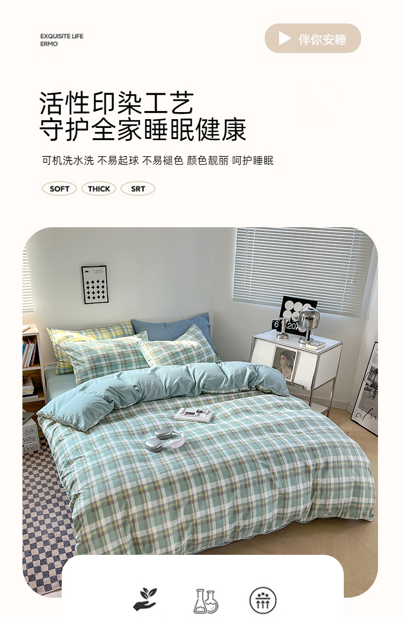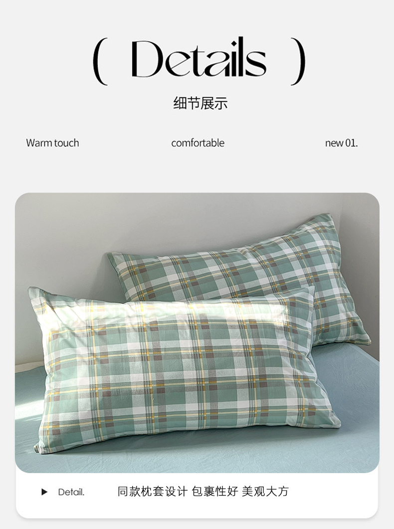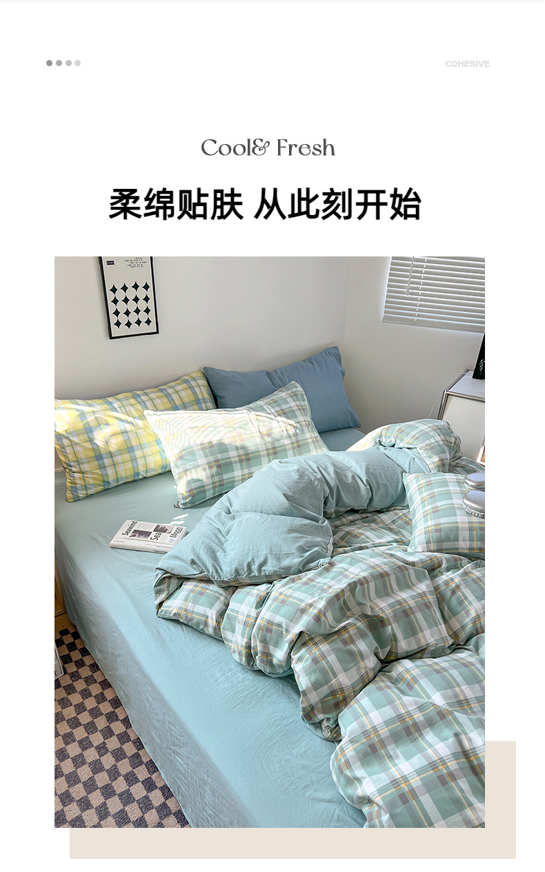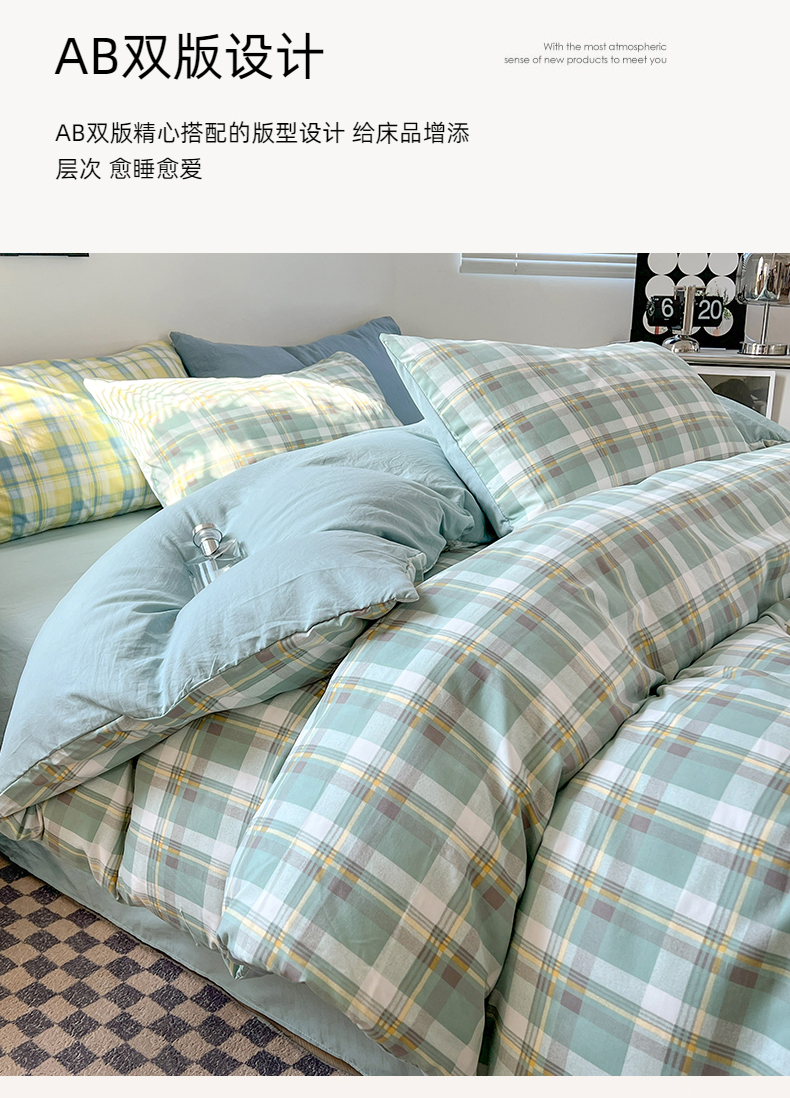 当前位置: 91家纺网 > 商品网购 > 床品套件 > 四件套 > 水洗棉四件套 > 贝拉梦家纺 2024新款日式简约款格子系水洗棉四件套套件系列-四件套 简兮-绿