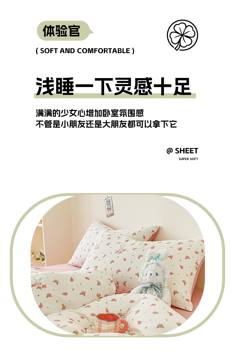 (总)木楌 2025新款全棉A类皱皱纱印花四件套,彼得熊,春泥,丁香-绿,丁香-紫,哈尼,海皮狗,涵雅,赫本熊,可心兰,可心咖,兰菲,美芽,木兰,奶油爱心,奶油波点,宁静,浅汐,沁香,微笑,星月,宾果熊,初颜,璎珞,花与兔,洛依,清新草莓,芮芮花,小彩蘑,小恐龙,小熊猫,幸运草,樱桃,知音,紫萱,小南国