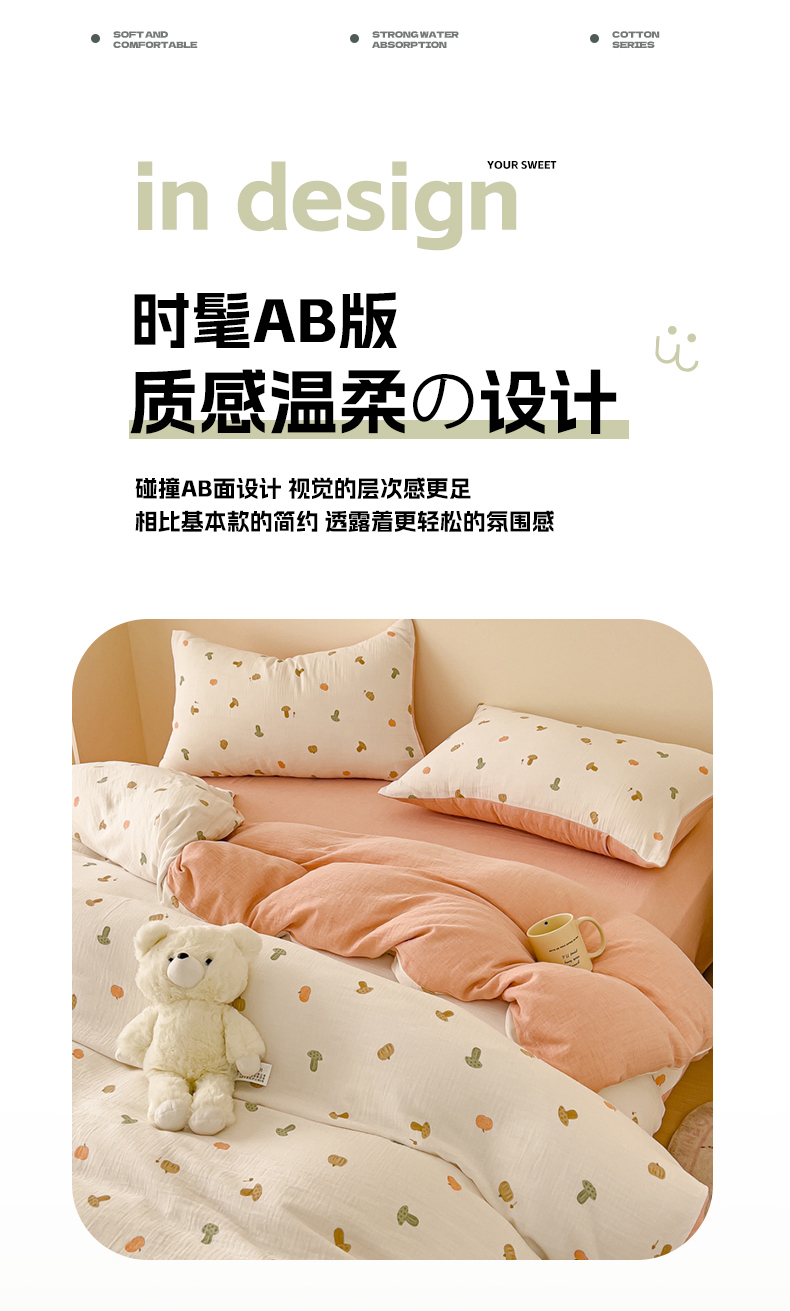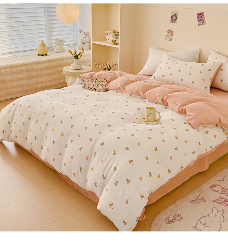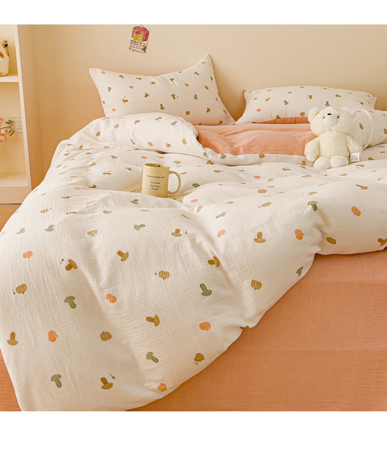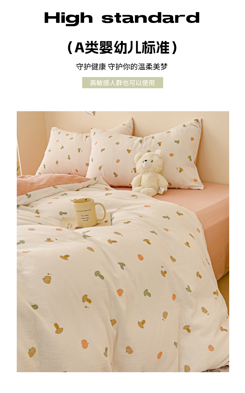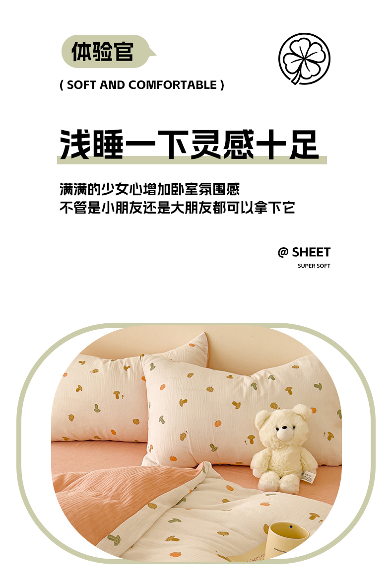 木楌 2025新款全棉A类皱皱纱印花四件套 小彩蘑
