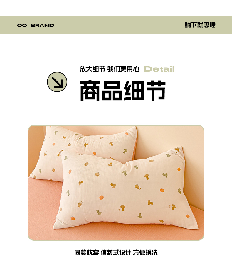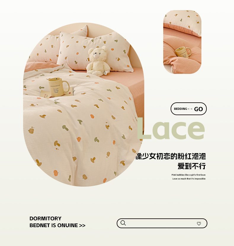 商品名称:木楌 2025新款全棉A类皱皱纱印花四件套 小彩蘑
