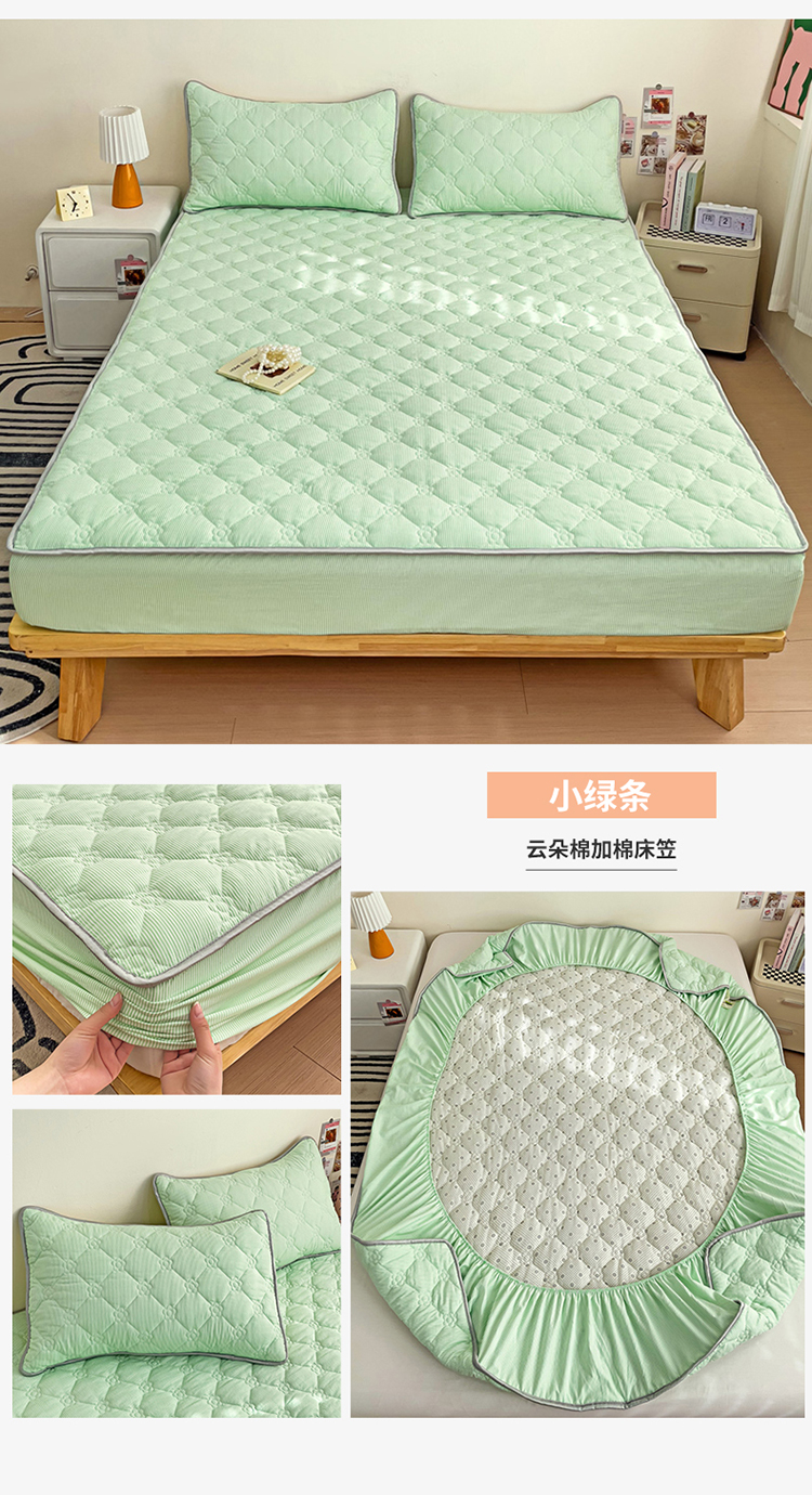 纽缦家纺 2024云朵棉亲肤加厚加棉床笠 小绿条