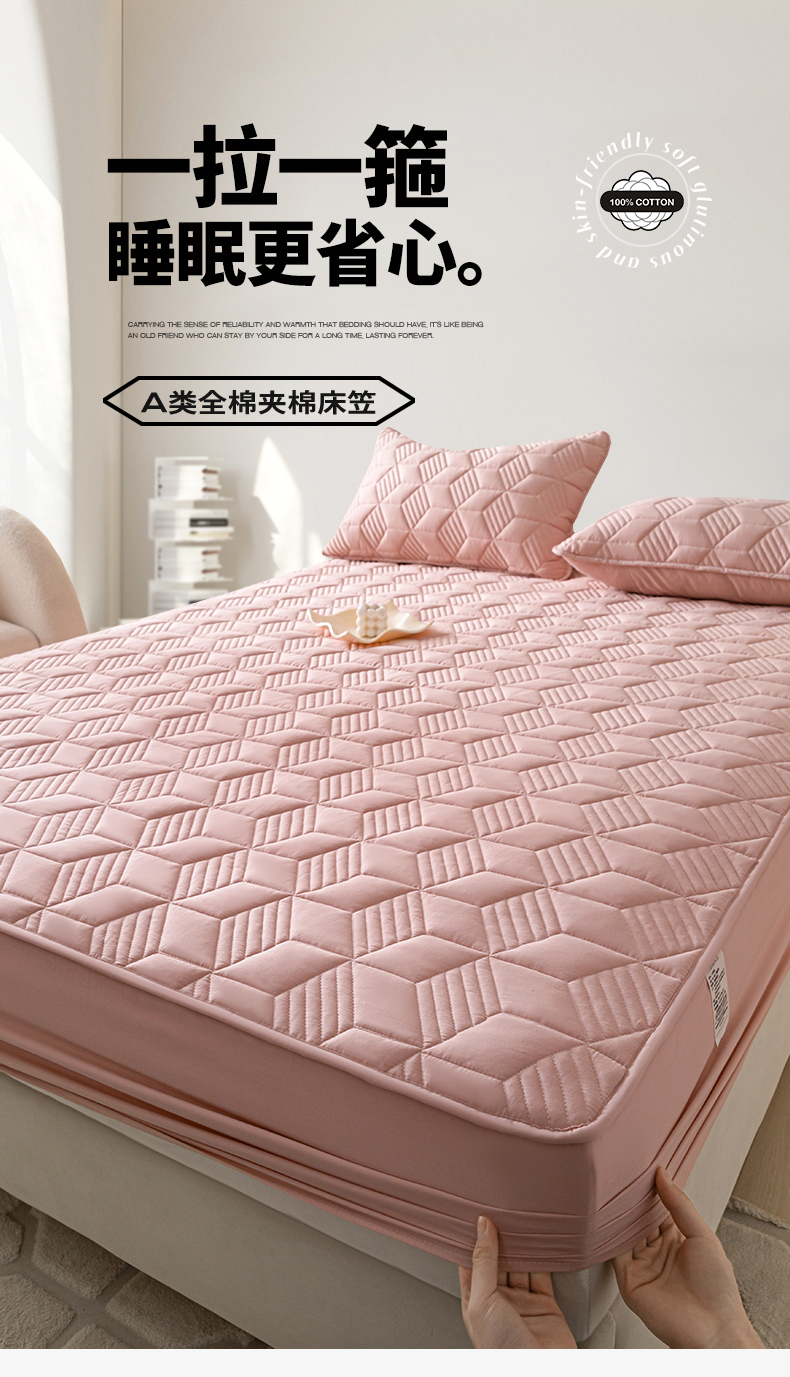 商品名称:其奥 2025新款高密全棉夹棉床笠三件套 豆沙(床笠款)