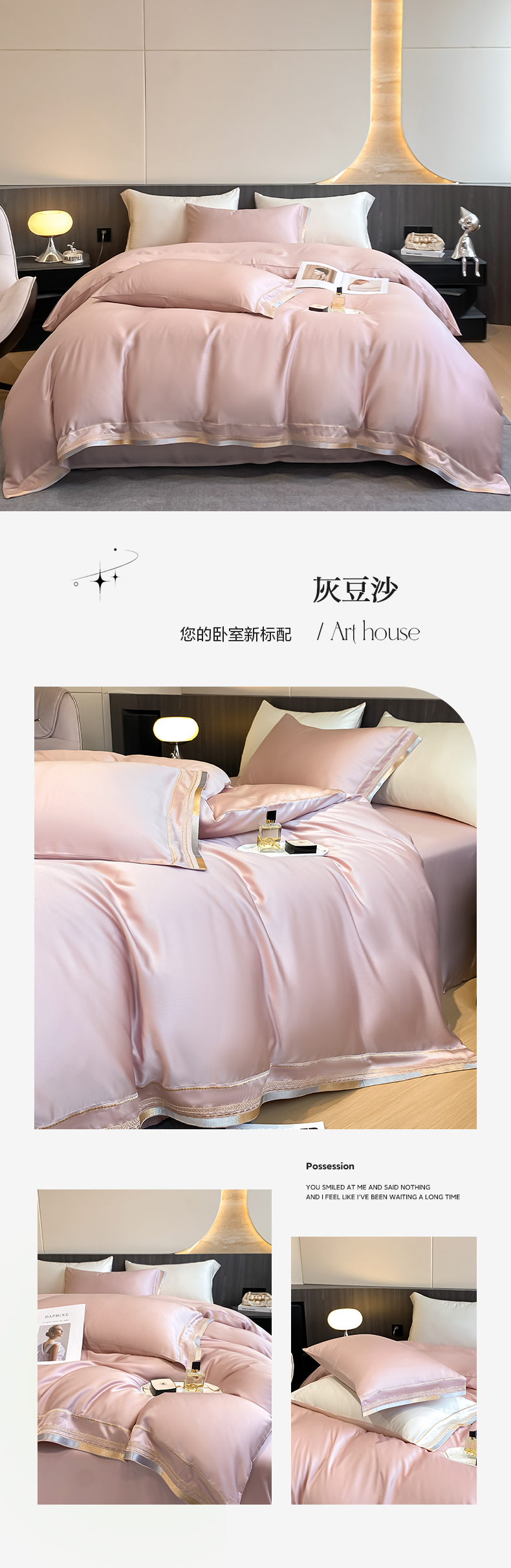 商品名称:卓缦家纺2024莱赛尔天丝刺绣四件套 灰豆沙