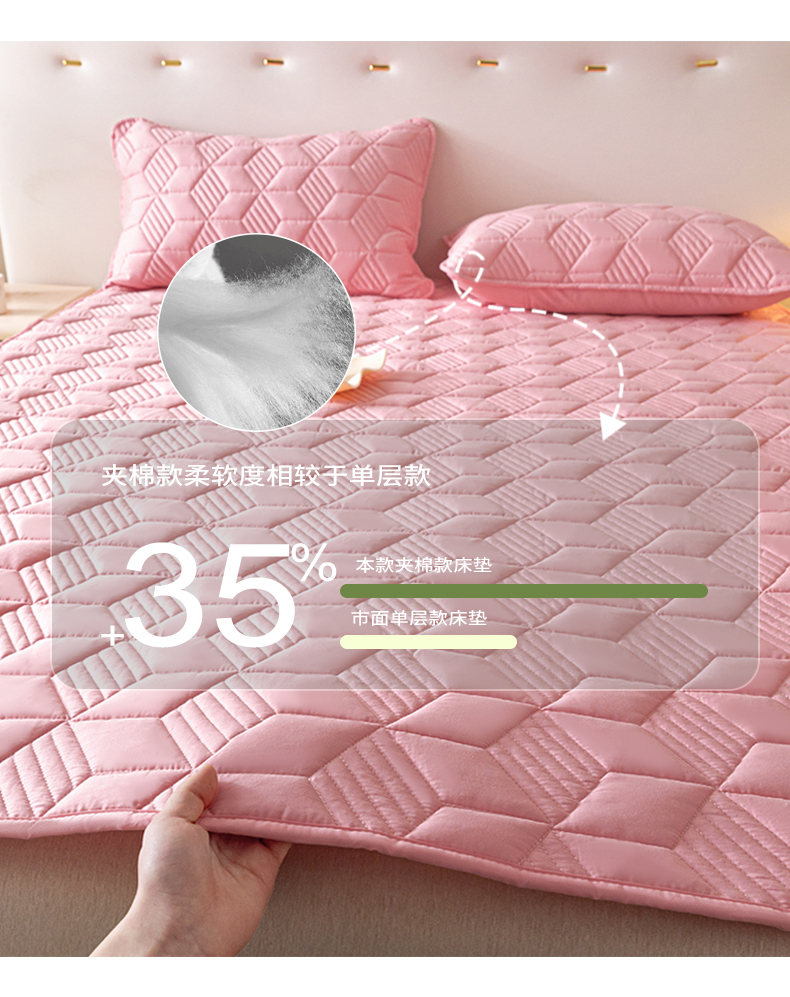 商品名称:其奥 2025新款全棉床垫软垫床褥三件套 粉色(床垫款)