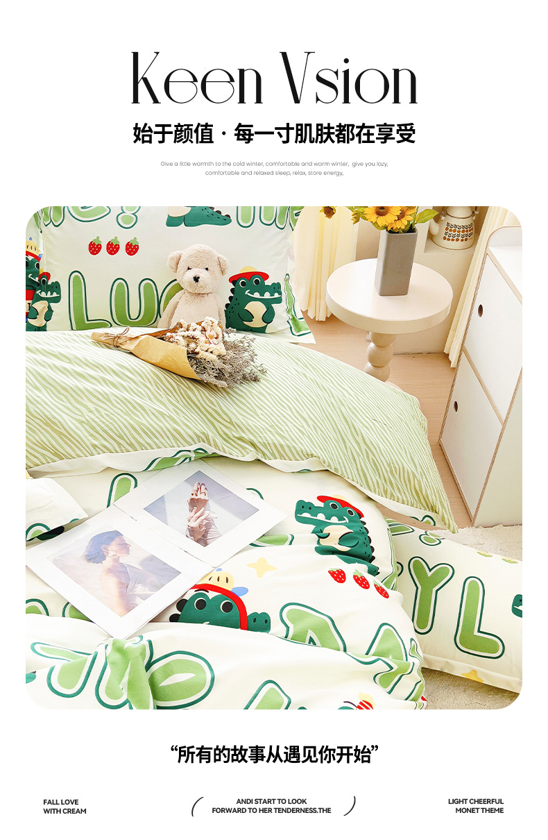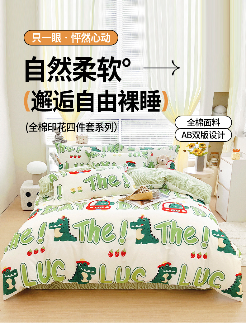 锦罗绣 2024新款13372全棉印花单品床单 小鳄鱼,小鳄鱼